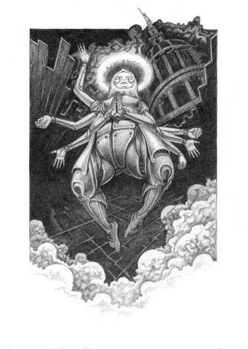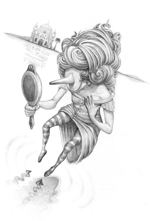 Having left the world of computer-based commercial art, Australian artist Michael Raftos now conjures surreal and fantastical beings and realms using only pencil, paper-board and eraser. He likes the purity of this approach and does not rely on tricks, special effects or algorithms of any kind. He draws from intuition, never fully sure how the final piece is going to turn out. Sketching, for him, is about deriving meaning. He tries to create a narrative which can articulate what is happening in his life on a personal level. And he hopes that what he produces is interesting enough for others to enjoy. Michael’s website is www.raftos.com. He is also on Artplode (www.artplode.com/artists/artist/Michael-Raftos). Some of his works are featured below:
