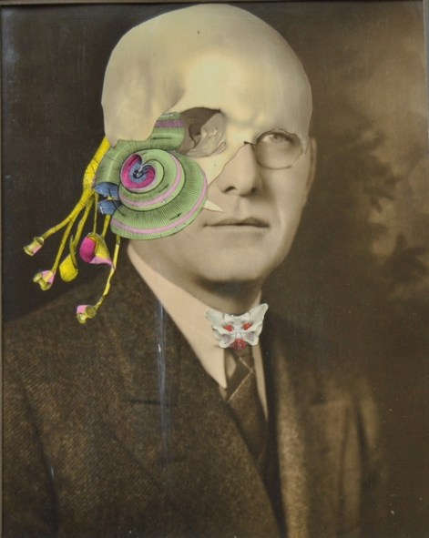 Axelle enjoys wandering through flea markets and collecting old illustrations and photographs. She cuts paper from medical books and pastes them directly onto photos to show what is inside outside. “I choose the pieces carefully, paying attention to the scale, the shape and the colour before putting everything together. The parts cut by the scalpel cover the image and reveal a new meaning in the manner of a palimpsest.