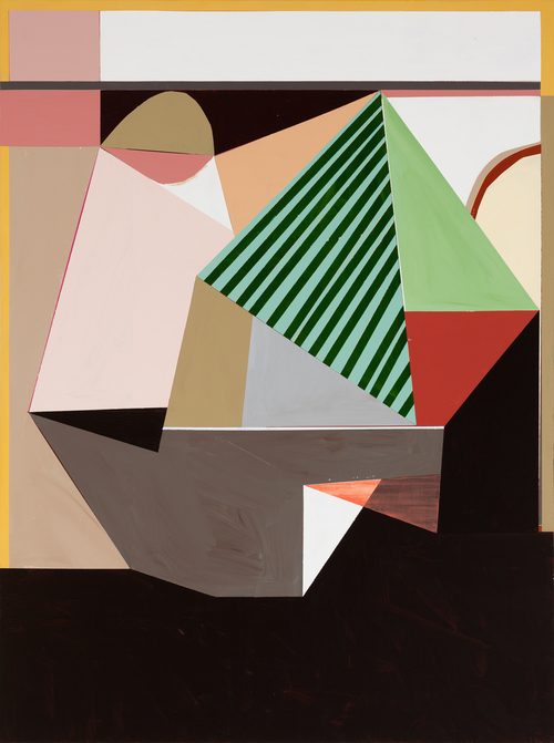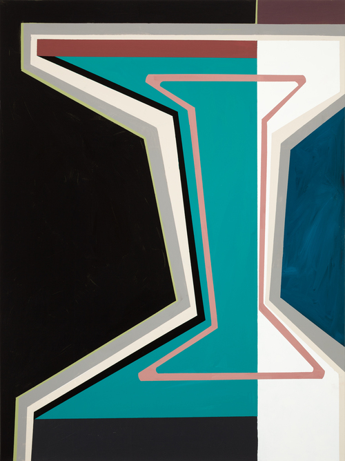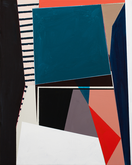 Having studied at the University of Colorado and then at the Art Students League of Denver and Hugo Anderson Studio, Alyson has been creating, exhibiting, and selling art in Denver since 1999. “My first paintings were on thick shards of glass from a shattered pastry case,” she says, “the glass ‘canvas’ was really my first teacher as a painter because it allowed for extensive experimentation. I used spray paint, watercolor, collage elements, acrylics, and paint markers. I transitioned to working on vintage windows with glass stain and spray paint and made light boxes out of these. I also made a lot of paintings and collage on found wood, some of which I posted up on telephone poles a long time ago. I finally ‘graduated’ to stretched canvas in the last few years. Before I painted, I made hats and record bags for local DJs out of upholstery remnants. The most clearly articulated theme I can see in my work is the joining of hard-edged shapes and a rhythmic use of color aimed at communicating and sustaining a certain, yet unnameable essence.”