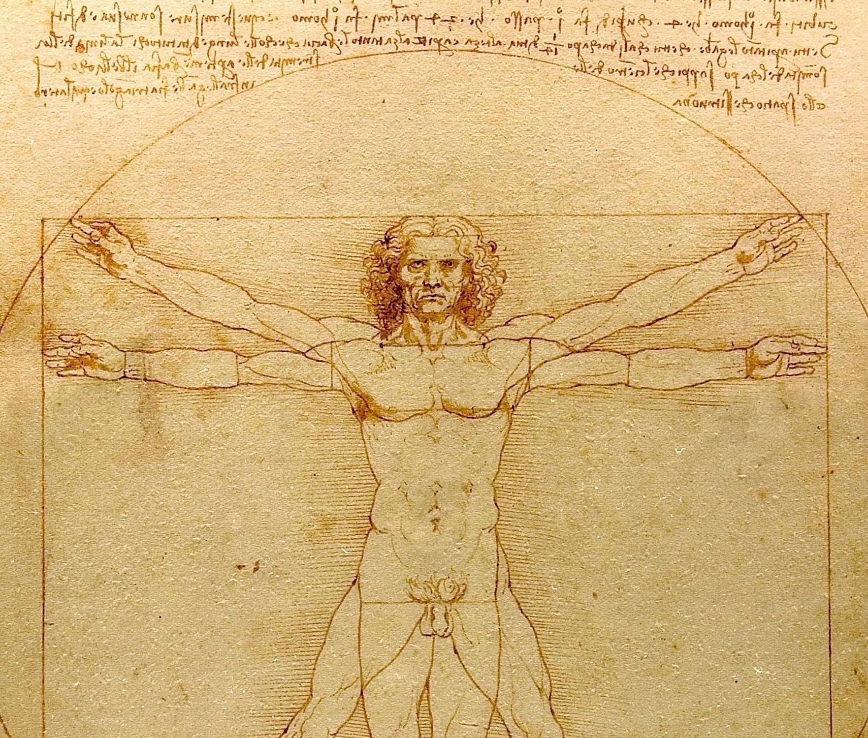 The name of the drawing is derived from the work of Marcus Vitruvius Pollio (c. 80 BC – c. 15 BC) – the Roman author, architect, civil engineer and military engineer – known chiefly for his multi-volume architectural treatise De Architectura (written between 30 BC and 15 BC). A guidebook for construction projects, it was executed under the patronage of and dedicated to emperor Caesar Augustus (63 BC – 14 AD), founder of the Roman empire and great-nephew of Julius Caesar.