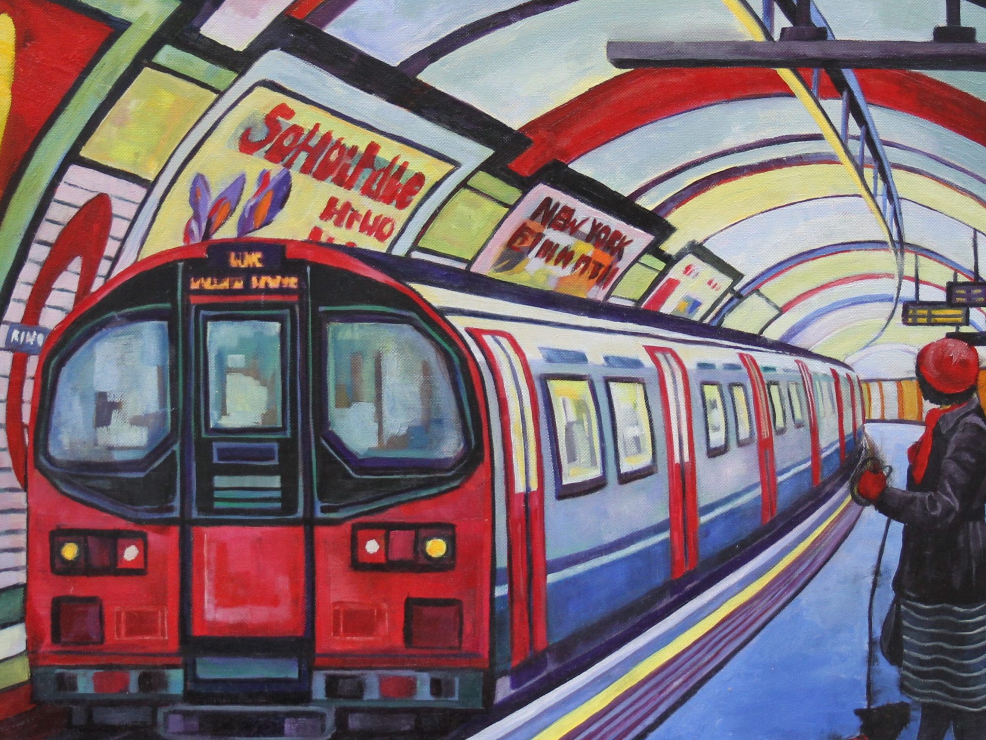Although many of her linocuts and paintings explore the experience of the Tube, Gail does love to capture the much older “over-ground” system. In both the mediums, she shows the passage of seasons and the daily hours. Strangers collide and then go their separate ways during winter or summer, morning and evening. People rush with bags, read magazines and novels or simply stand alone, waiting. The artworks represent a contemporary urban reality but they are given a refreshingly vintage effect. They look like illustrations from a book from the early 1900s.