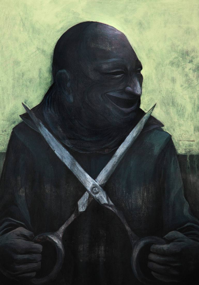 Learn more about Nadja Jovanovic on her blog (artnadja.blogspot.com), Saatchi Art profile (www.saatchiart.com/konjicbrbonjic) and Facebook page (www.facebook.com/byneb). Take a look at some of her haunting, brilliantly shaded scenes. The featured painting is called “Veils of Illusion”.