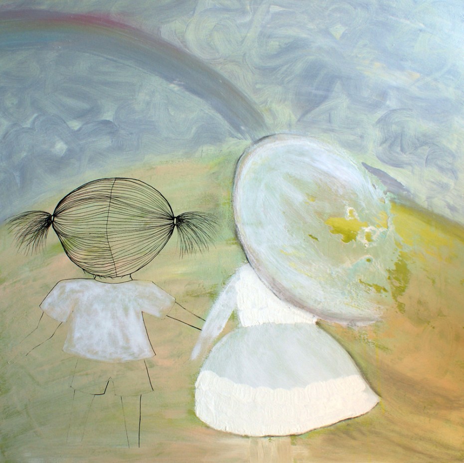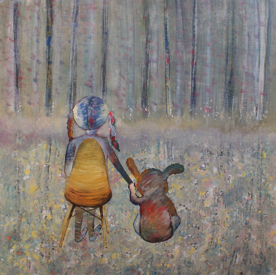 There is a particularly moving painting “The Friend”, in which a girl sits on a chair with a pet bunny next to her, both facing the forest. On this piece, Ivana comments: “What is true friendship about? What kind of person should the best friend be? As a little girl, I would dream about someone I could really trust, who would never leave me, who would listen to me patiently and feel with me the small miracles that others are not able to see, who would deeply understand me, who would never be afraid of an unknown forest, because I do. I wished my daddy to be my best friend, but he has never been. So I escaped into my fantasy and my dreams to avoid admitting to myself the reality of the world. I depicted an eternal friendship. I painted a friend who waits patiently, never leaves you, is not afraid of an unknown forest, who listens to you, watches your small private miracles and understands you without words.”
