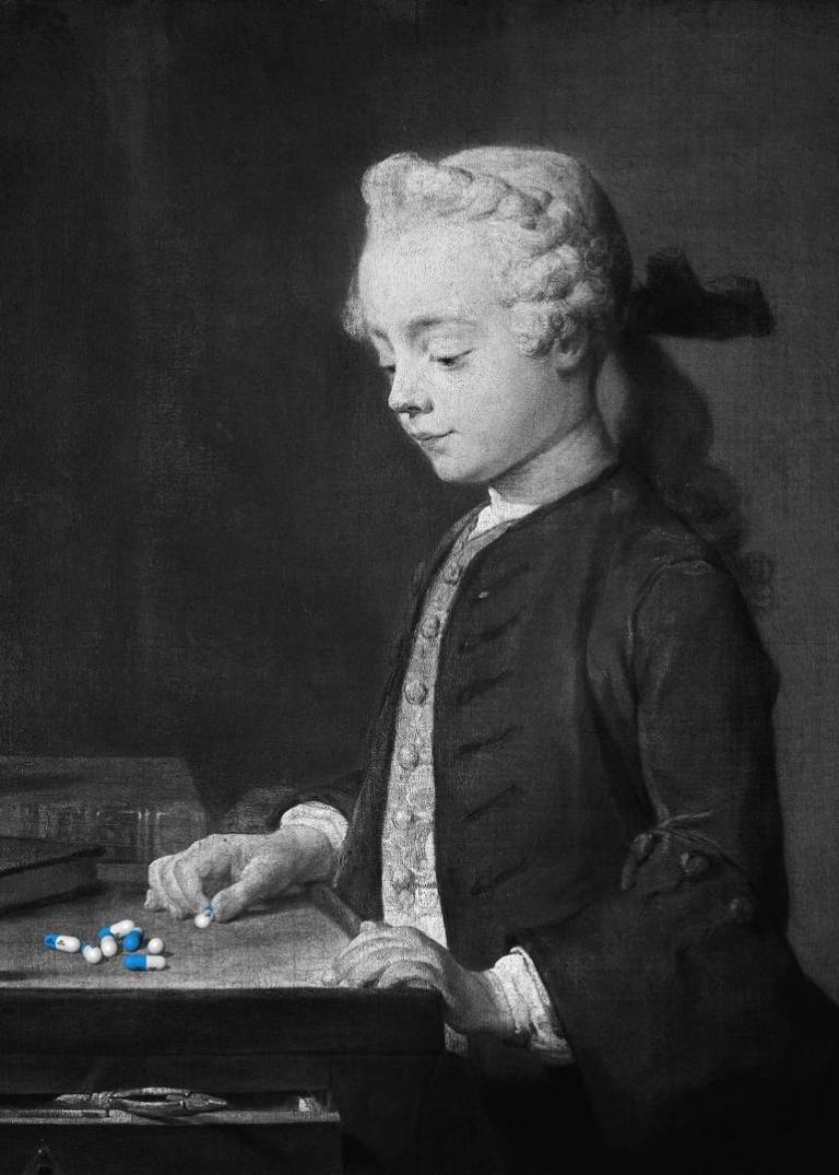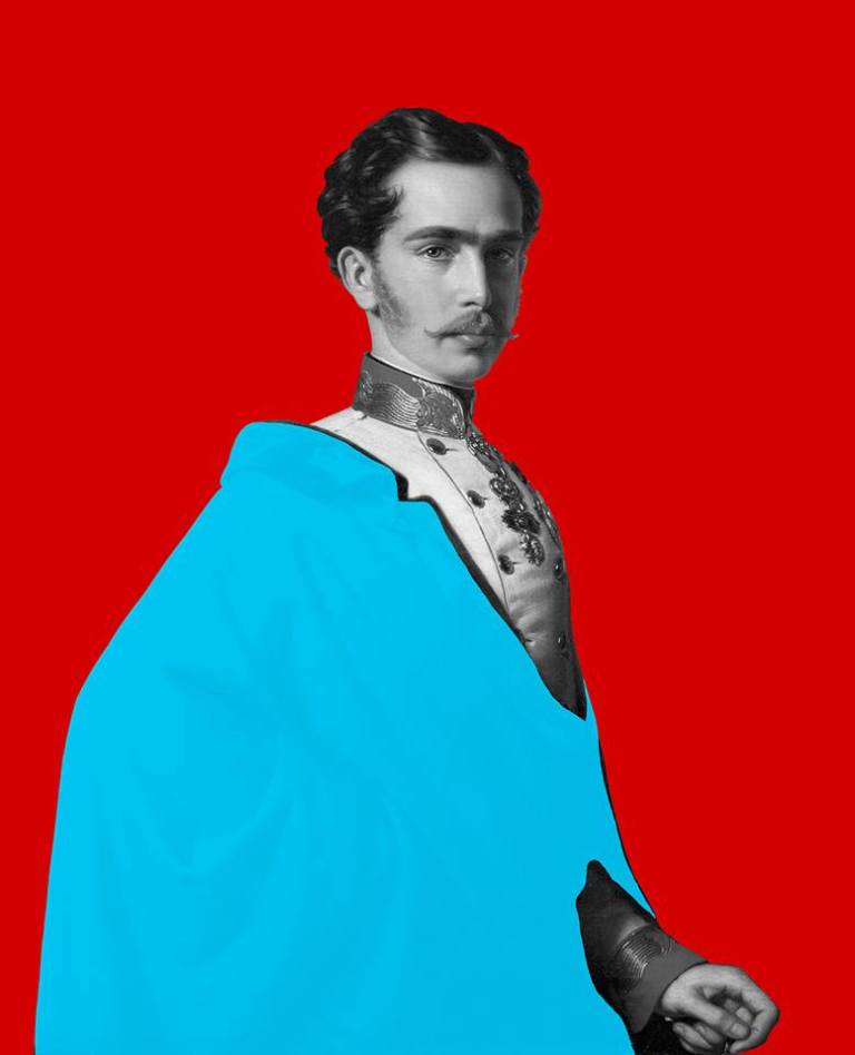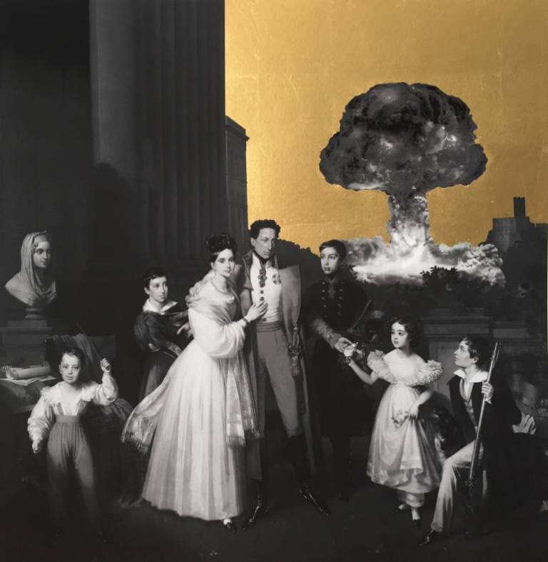 Having left behind a successful career in fashion (which included working for brands such as Vivienne Westwood), Magnus Gjoen describes himself as an “accidental” artist. His art is a wild blend of styles – street, pop, fine – where classic portraits of neat and dignified men, women and children exist alongside corporate logos, modern pills and bombs. Old masterpieces are manipulated, injected with a punk sensibility. But these acts of destruction lead to transfiguration – newer meanings emerge that can be more relevant to the contemporary viewer.