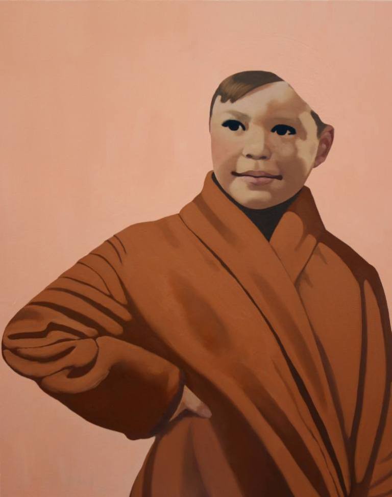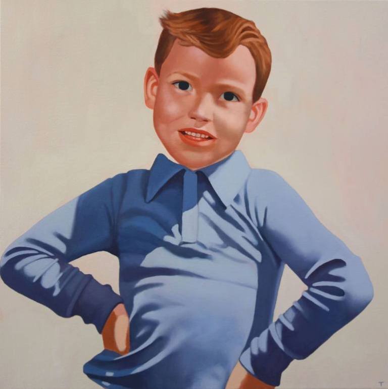 Tracy explains her series “People of Faux”: “This is about an imagined community of people. I liked to think, while making the work, that each painting could be a portrait in a doll’s house, where all of the right parts of a portrait are present, but something feels a little off. Representing a simulation of life, falling just short of the real thing. A type of realism that’s not quite real. Every subject in the portrait was either imagined or referenced from an online image or vintage photograph bought from an online shop on Etsy.”