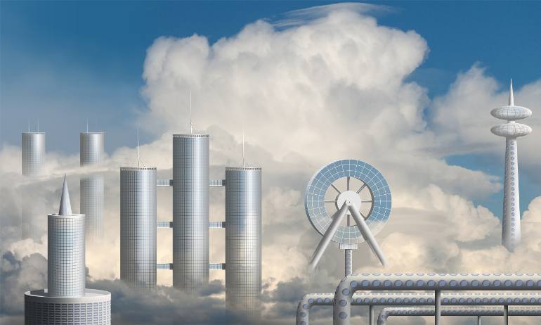 Ceslovas’s other project “Cloudscapes” shows a merging of earth and air. Complex human constructions like skyscrapers and trains reach the atmosphere. This series, according to the artist, is about the “relativity of reality and the temporariness of the material world.”