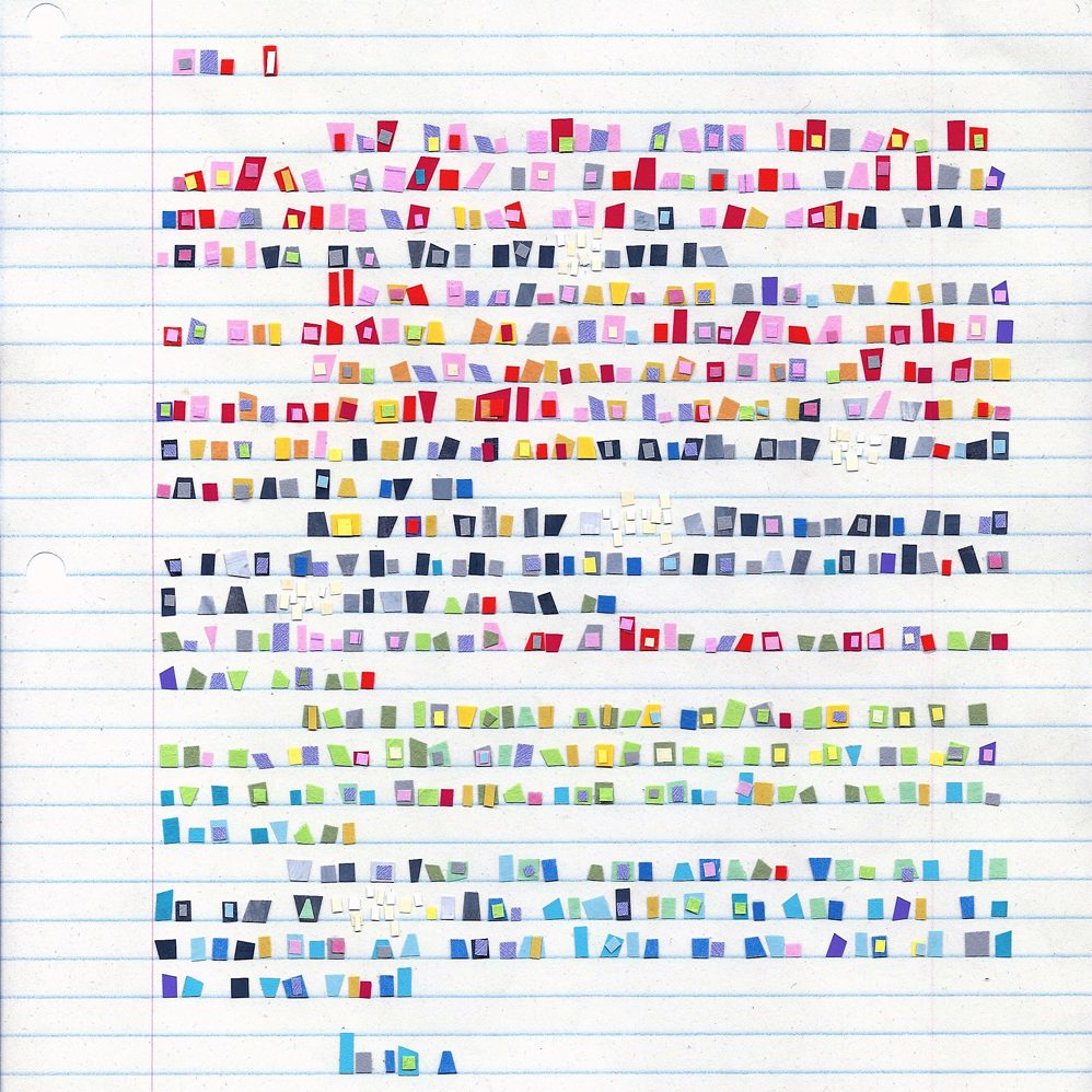 In her “Letter Collages”, artist Catalina Viejo Lopez de Roda – originally from Malaga, Spain and now living in Hudson, New York – conveys colour-coded messages to concrete figures like her own body and the people she knows, and also to more abstract phenomena like emotions (“Happiness”) and states of mind (“Overcoming My Fears”). The series is pure consciousness translated into minimalistic little blocks of varying shades, and should be experienced and felt intuitively rather than “reasoned out” in definite terms.