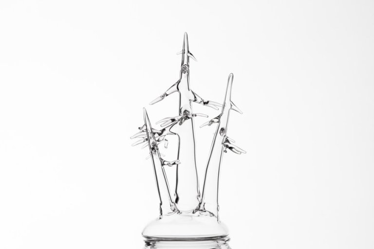 “I have always admired with wonder and respect nature,” writes Simone. “I believe that it is the greatest expression of beauty; the kind of beauty that satisfies senses and only art can approach. That’s the reason why in my work I take inspiration from natural forms, repurposing them through a decorative key that preserves the elegance and poetry. A contemporary ‘Cabinet of Curiosity’ where nature is respected not defaced, reproducing the essence by fragile and transparent shapes. Glass picked me, and having the control of technique allowed me to use it as medium to develop my thoughts.”