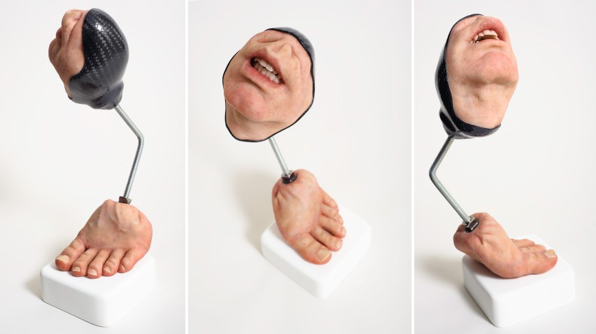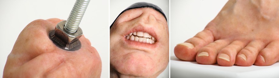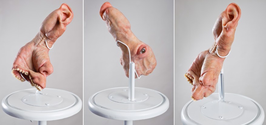 What Bacon explored on flat surfaces, Andrew Etheridge – a Durham, North Carolina-based artist – has been working out in proper three-dimensional models. In his new series, Andrew re-imagines the body as a new creative form by morphing its individual sensory parts. Each piece is made by deconstructing parts of the human anatomy and meticulously reconstructing these parts into a type of self-examination. Eyes are embedded in feet, ears are set at the end of wrists, legs emerge from heads, lips are found somewhere below the knees. The sculptures collectively are an assault on the senses.