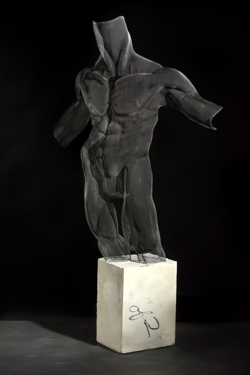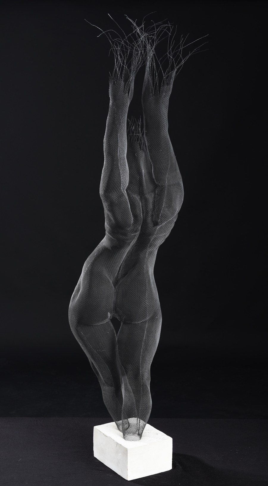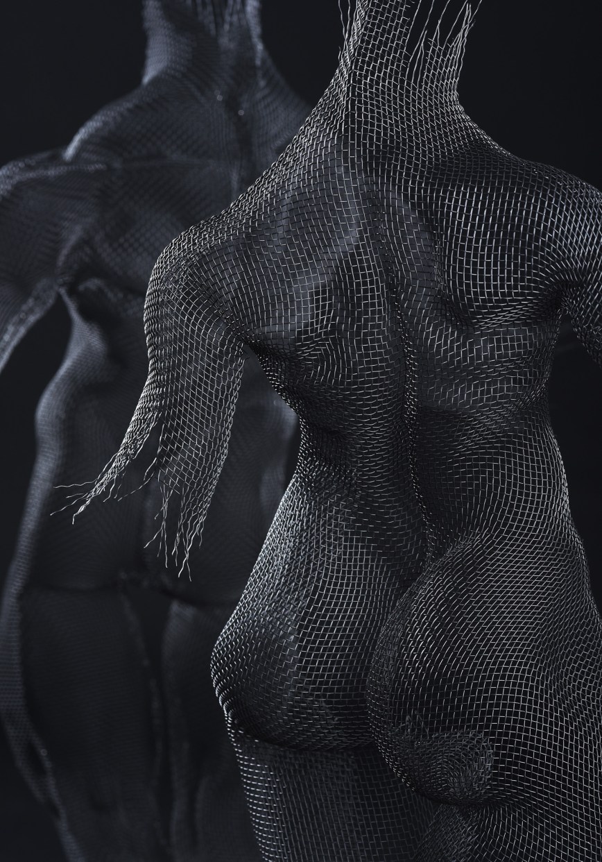 The sculptures of Ofer Rubin – an Israeli multidisciplinary artist and entrepreneur – seem to emerge out of thin air. Each is a unique human body that has been shaped from a single piece of metal mesh. The forms are incomplete, as if suspended between two stages of evolution. Expanding, reaching out, hoping for growth and enhancement. They may look a little vulnerable but their muscles, tissues and bones are made of rough, coarse, unforgiving materials. Looking at these bodies, one can easily guess that they’ve been influenced by computer-generated imagery.
