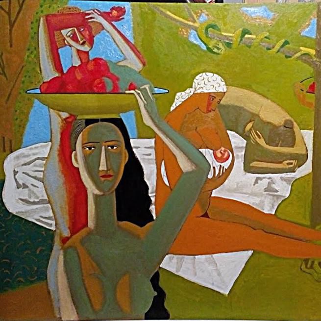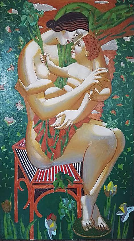 Olga has devoted the past few years of her life to home and children. Exhibitions have been rare and random. She prefers to call herself a “housewife who can draw” rather than an “artist”. However, her themes, layers of meaning, colour and composition will prove that her art is more than a mere hobby. Her interpretations of everyday situations – a family’s breakfast, a picnic in the country or a child’s illness – are always rich and deep.