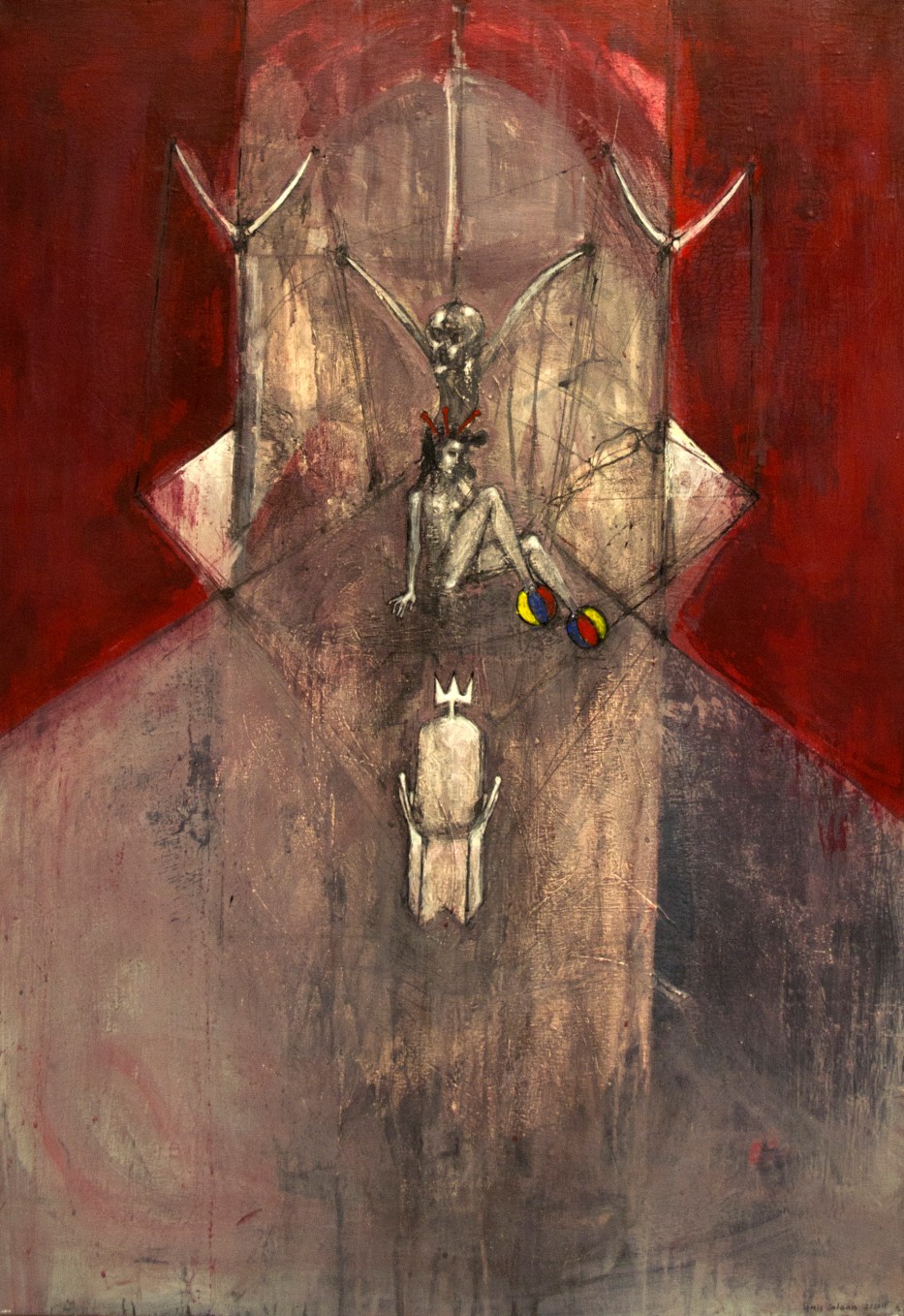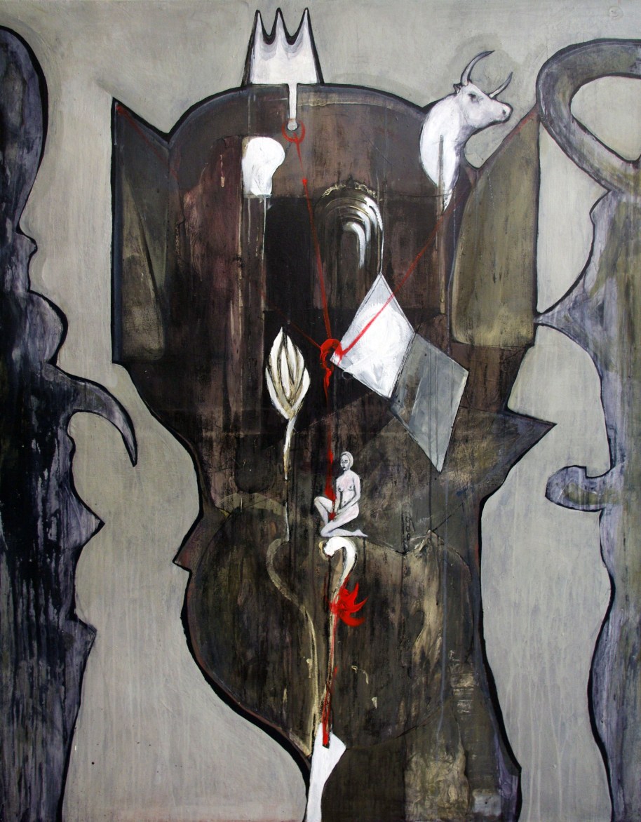 According to Athena Schina, critic and art historian at the University of Athens, the art of Simis Gatenio consists of “mirages” that are suspended tragically and ridiculously upon a surface: