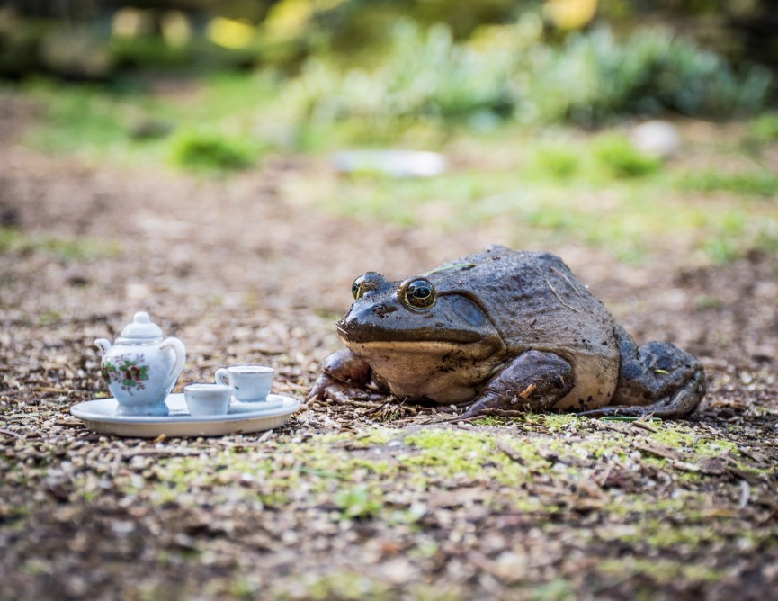 Snails, frogs, snakes and toads – Jay Rainey, an artist living on an island in British Columbia, Canada, invites them all to her tea party.