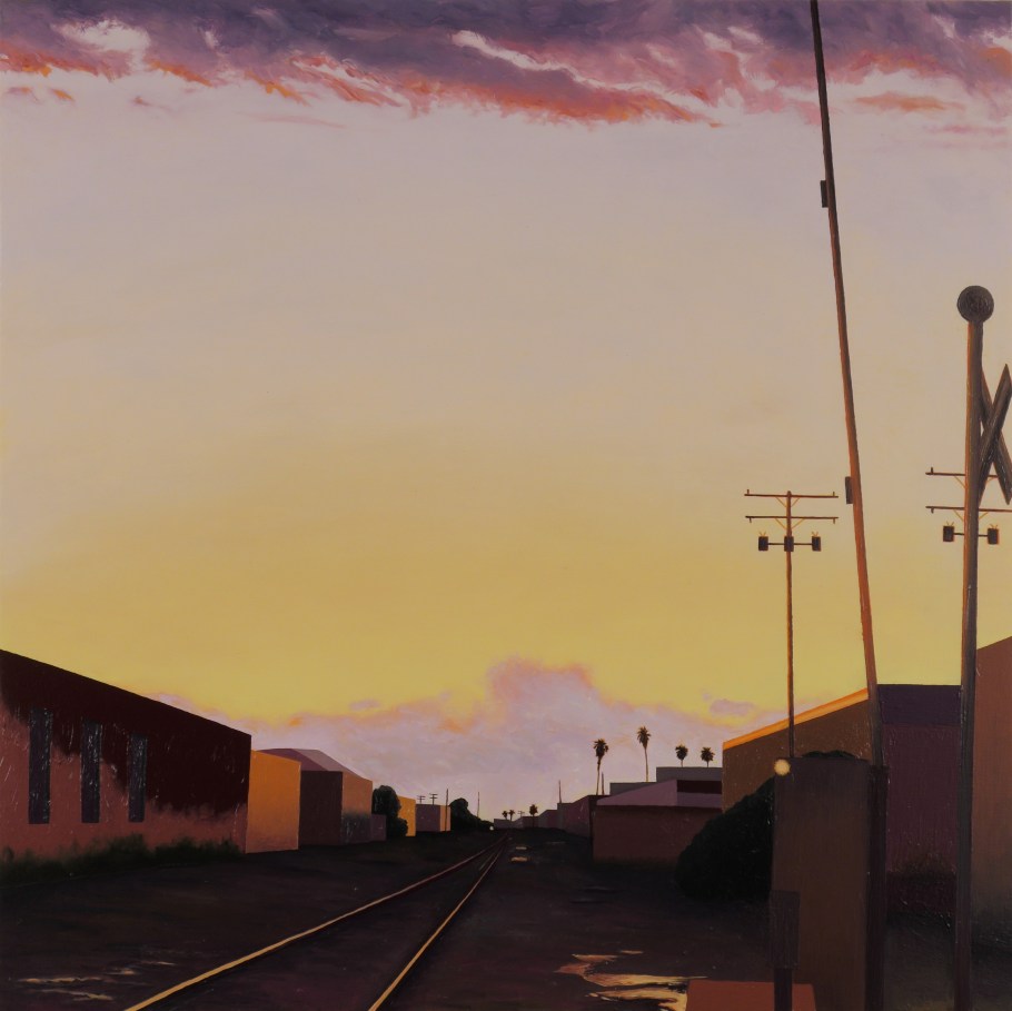 Bradley moved to Los Angeles in 2009, after earning a BFA from Massachusetts College of Art and Design in Boston. The luminous sky at dusk is the dominant element of his art but he always includes parts of the surrounding landscape, its natural and urban features.