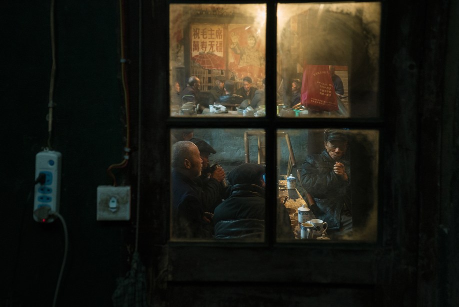 In his series “If You Don’t Drink Tea, You are Not Chinese”, Nick shows elderly Chinese men congregating in a decaying but cozy establishment. Under bulbs of pale golden light, surrounded by walls with oversized red Chinese alphabets and posters of political leaders, they converse with each other and drink from their cups. The kettles are many…and huge.