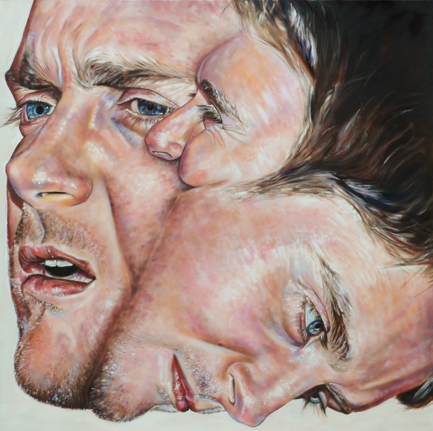 Faces emerge from within faces in painter Carl Beazley’s intriguing collection “Where’s Your Head?” Eyes and lips and noses multiply – as if the viewer were stoned. Expressions are those of pain, confusion, disgust and plain craziness.