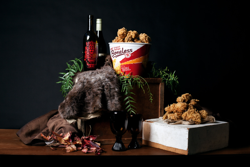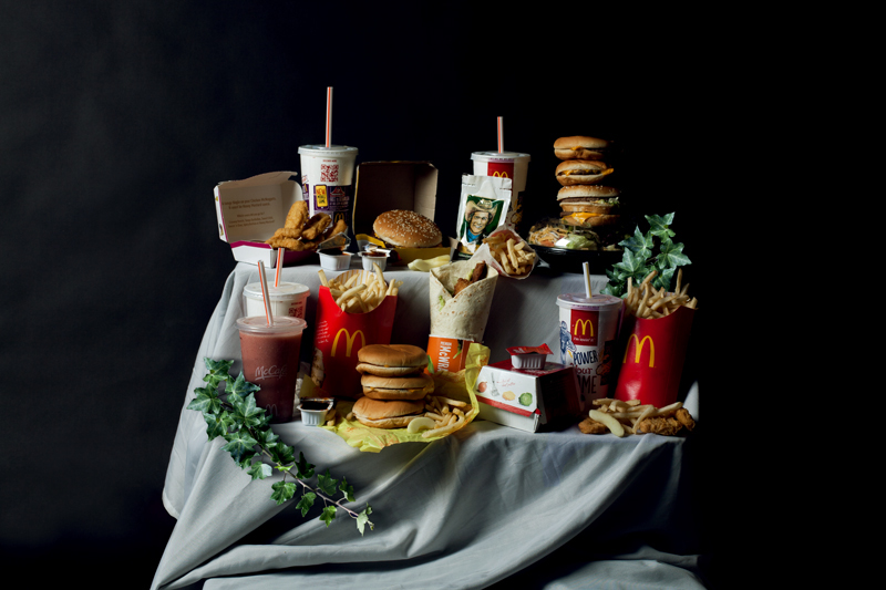 In her series “Contemporary Pieces”, photographer and nomad artist Rebecca Rütten projects fast food (from brands like Taco Bell, McDonald’s and KFC) in the manner of classic paintings. In our time, social media profiles are flooded with pictures of day to day breakfasts and lunches and dinners but Rebecca wants to aestheticise the meals further to shed light on contemporary issues of class and financial status.
