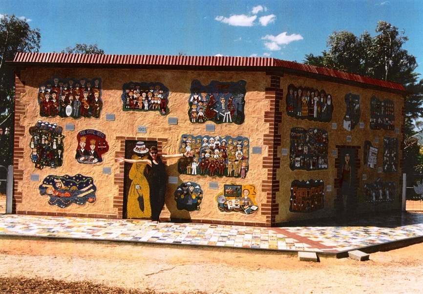 Marie’s artworks are featured in corporate collections, private collections and several art books worldwide. They are also available as bed linen. In addition to producing a large store of paintings and prints, she has worked on several public sculptures – the largest creation spans 44 metres across at the entrance of the town of Balaklava (South Australia) called the Federation Gateway. This sculpture depicts a federation house with stories made from handmade ceramic and mosaic, telling some of the tales of the district over the last 100 years both in pictures and the written word on plaques.