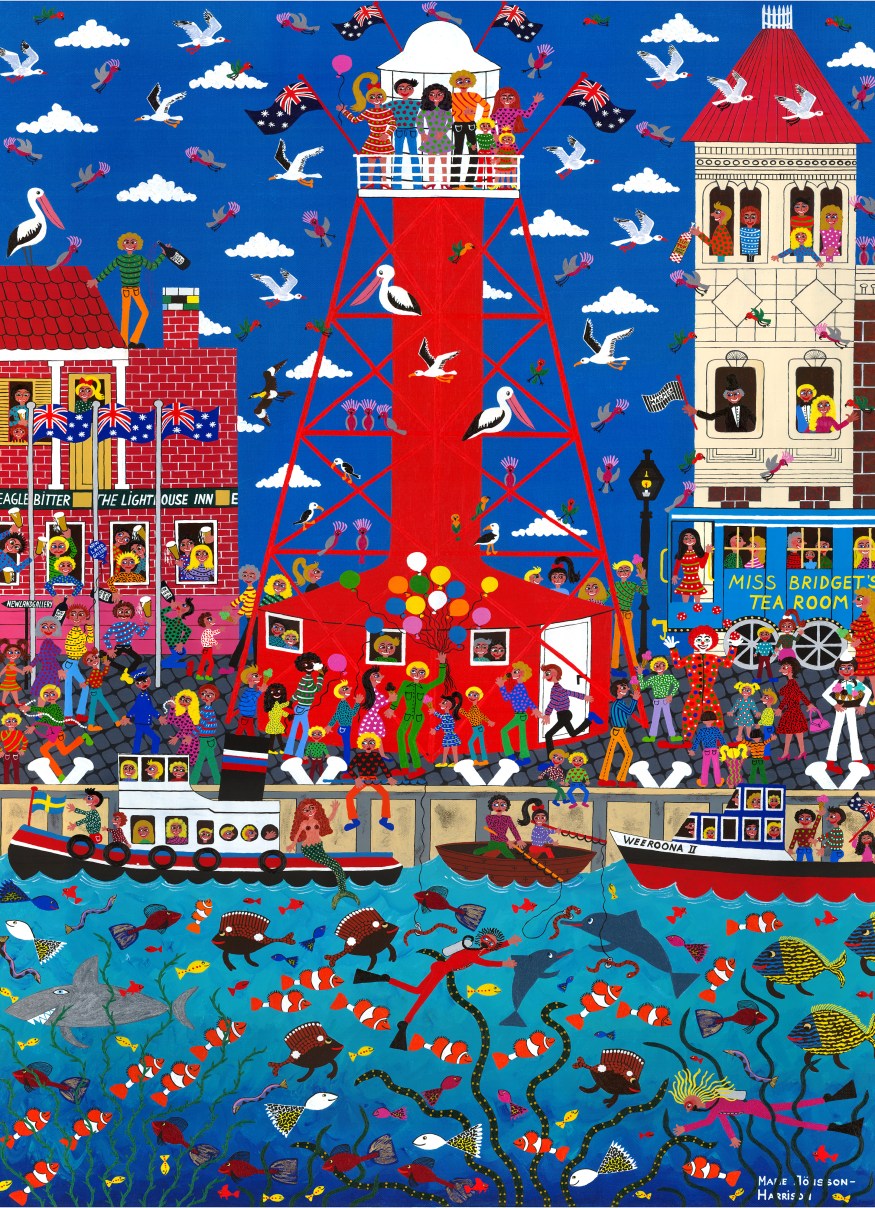Australian painter, sculptor and printmaker Marie Jönsson-Harrison is known globally for her colourful and energetic “Naïve” and “Outsider” Art.