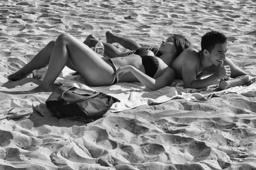 “I first began photographing by the seaside during summers in Brittany, France,” explains Sherrie, “and in recent years expanded the project to New York City. Daily life at a French beach has particular and specific themes, which make for a great juxtaposition with the urban seaside centers of New York.