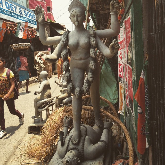 The dew settles on the rusty grill of the window. She was standing right there, holding the window’s grills, when a man – a foreigner as far as she could tell, having seen too many of them in these lanes around puja – clicked her photographer. They come to see how the artisans craft such huge models in these small and dirty workshops of Kumartuli.