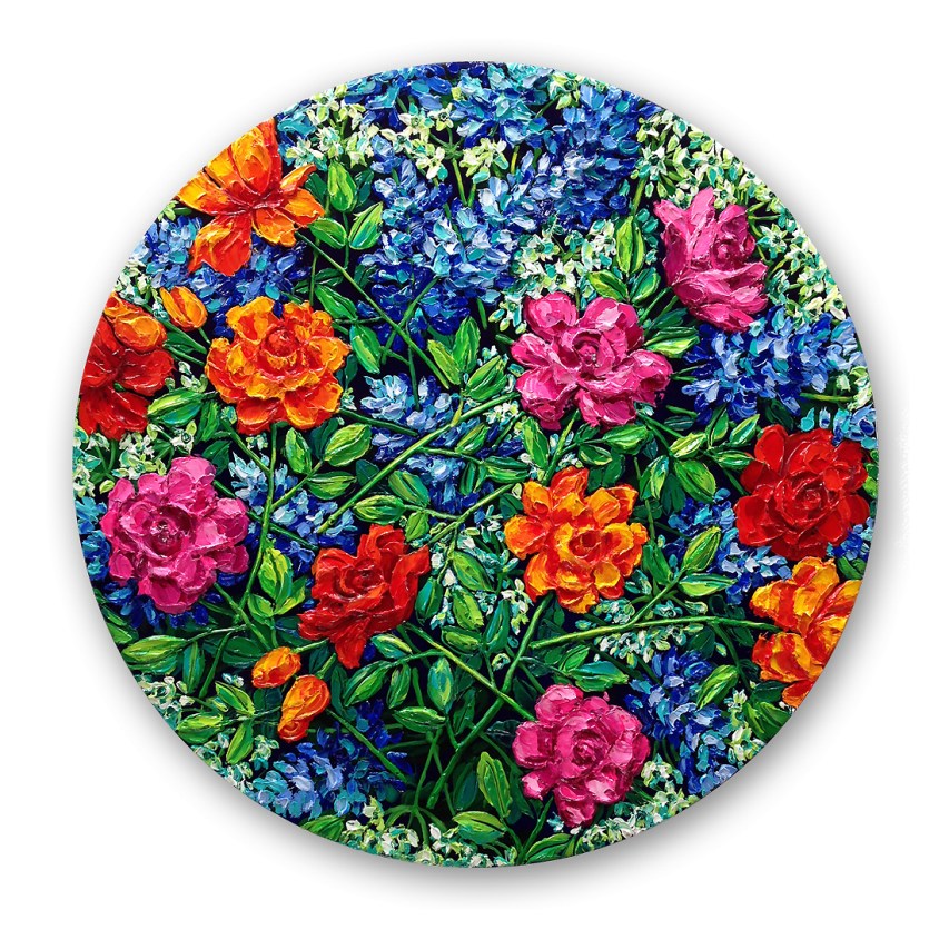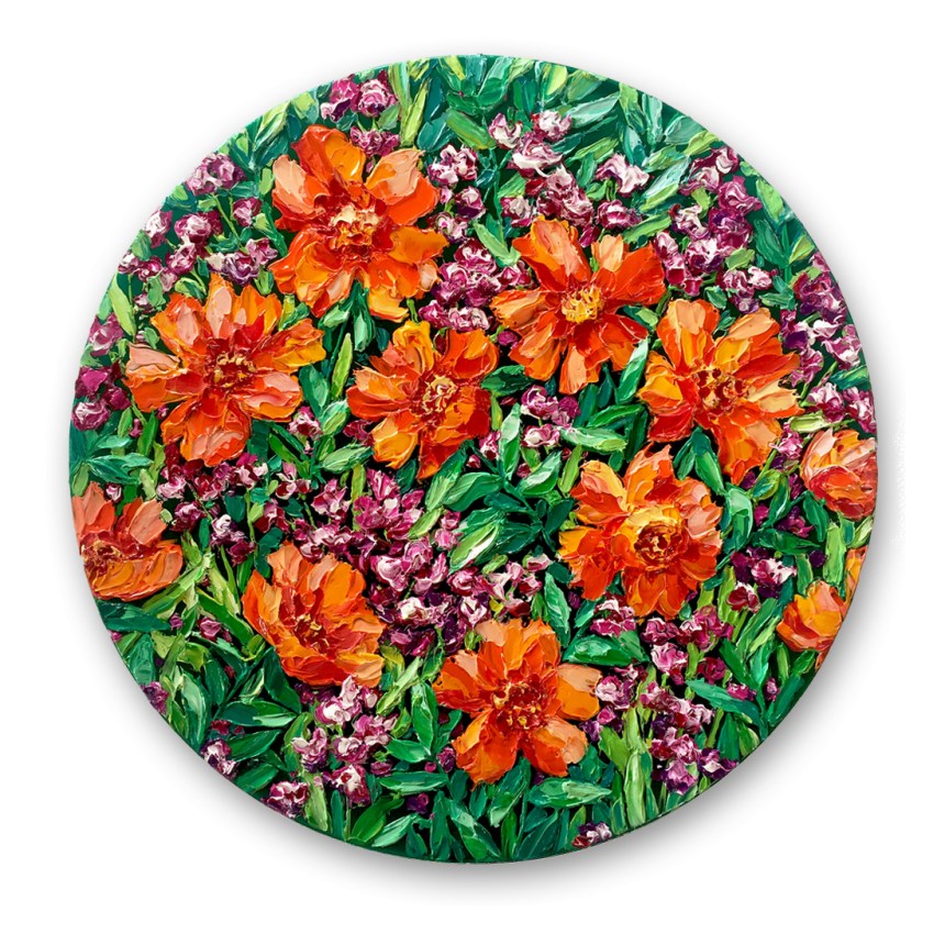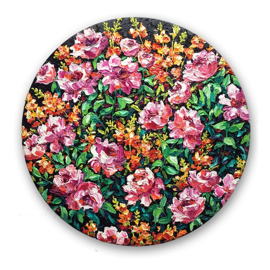Her latest series “Opulence” is an exploration of paint, colour and the botanical. These paintings are inspired by “the language of flowers”, or Floriography.