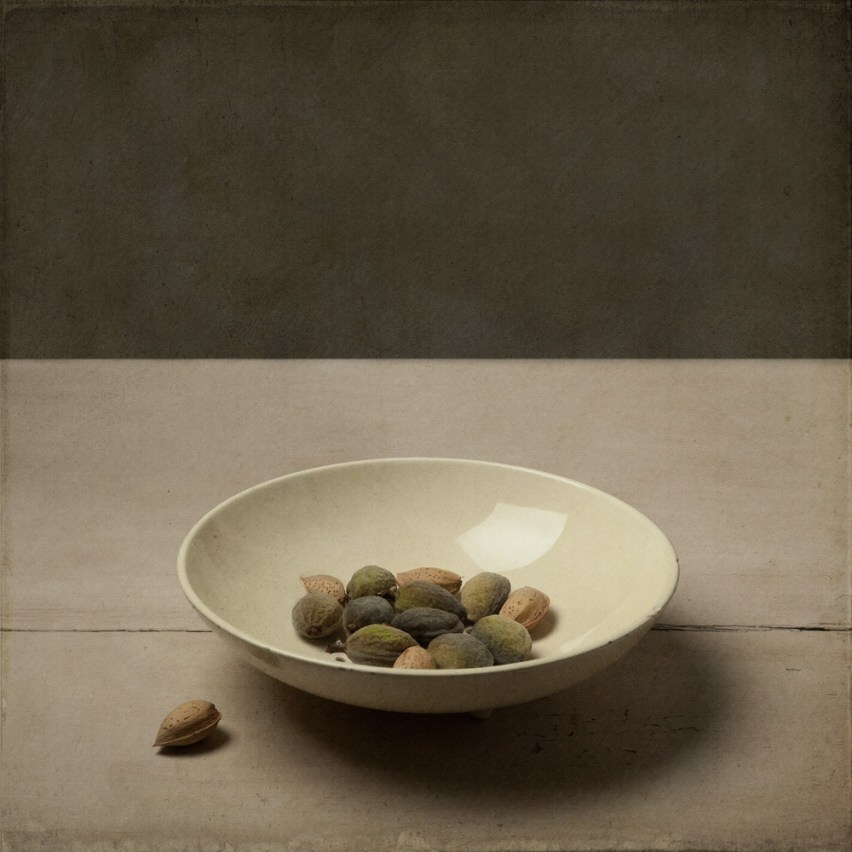 Seeds, petals, loafs of bread, egg shells, orange peels, pots of honey, jars of oil arranged and exhibited carefully in indoor spaces – photographer Tineke Stoffels (born 1957, Den Helder, the Netherlands) captures the beauty of everyday objects in a style that resembles the still life paintings of the Dutch Golden Age. “One often wonders upon seeing my work,” writes the artist, “whether it’s a photograph or a painting. For me it’s both.”