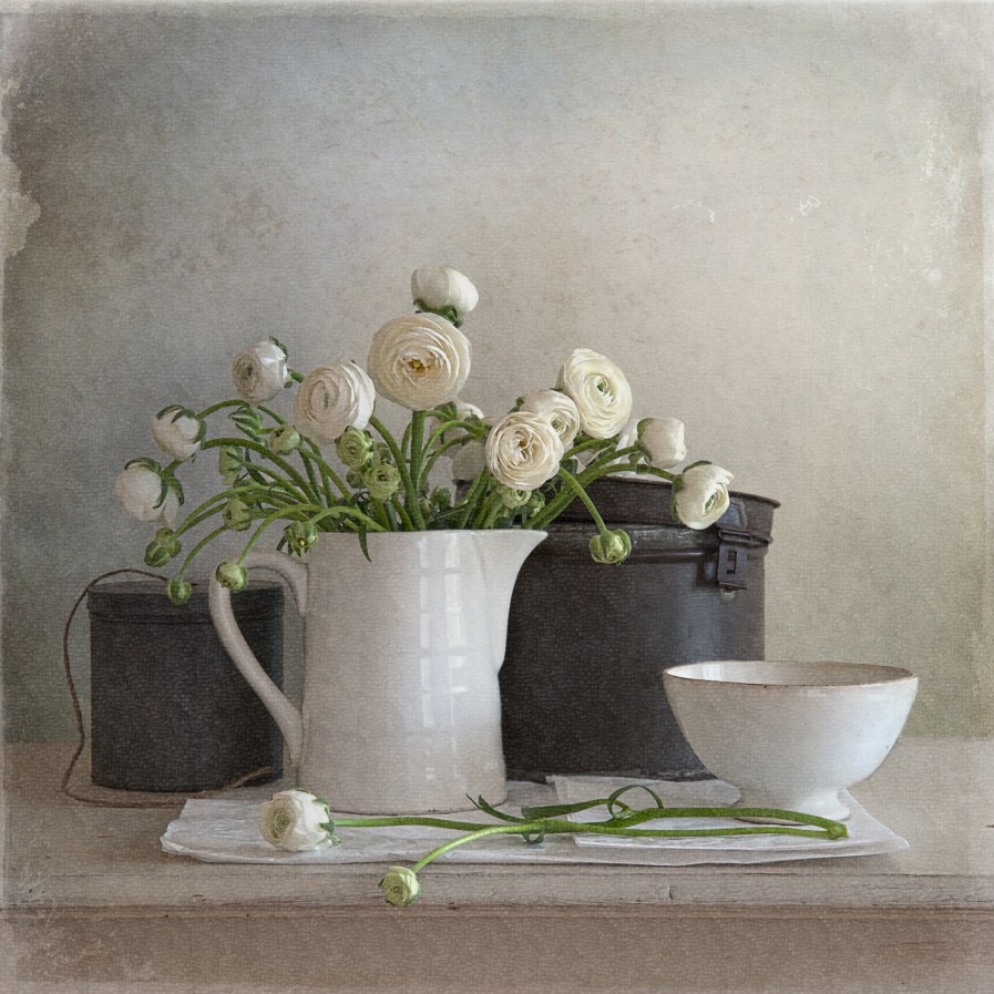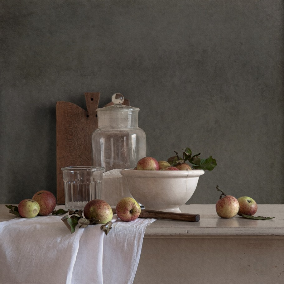 Tineke’s interest in art was born when her aunt took her at the age of 12 to the Rijksmuseum in Amsterdam. “I still feel how impressed I was by the works of the Dutch Masters,” she continues, ” – the use of light and shadow, the colours, the clothes, the subjects, the techniques. In my studio, I can fully concentrate on the creation of a new work. With the use of my camera and strobes. For preparing and assembling a new still life I take plenty of time. Until everything is placed the way I want. I love natural materials, simplicity, symmetry, strong lines, sober colours and exquisite detail and apply that as much as possible in my work.”