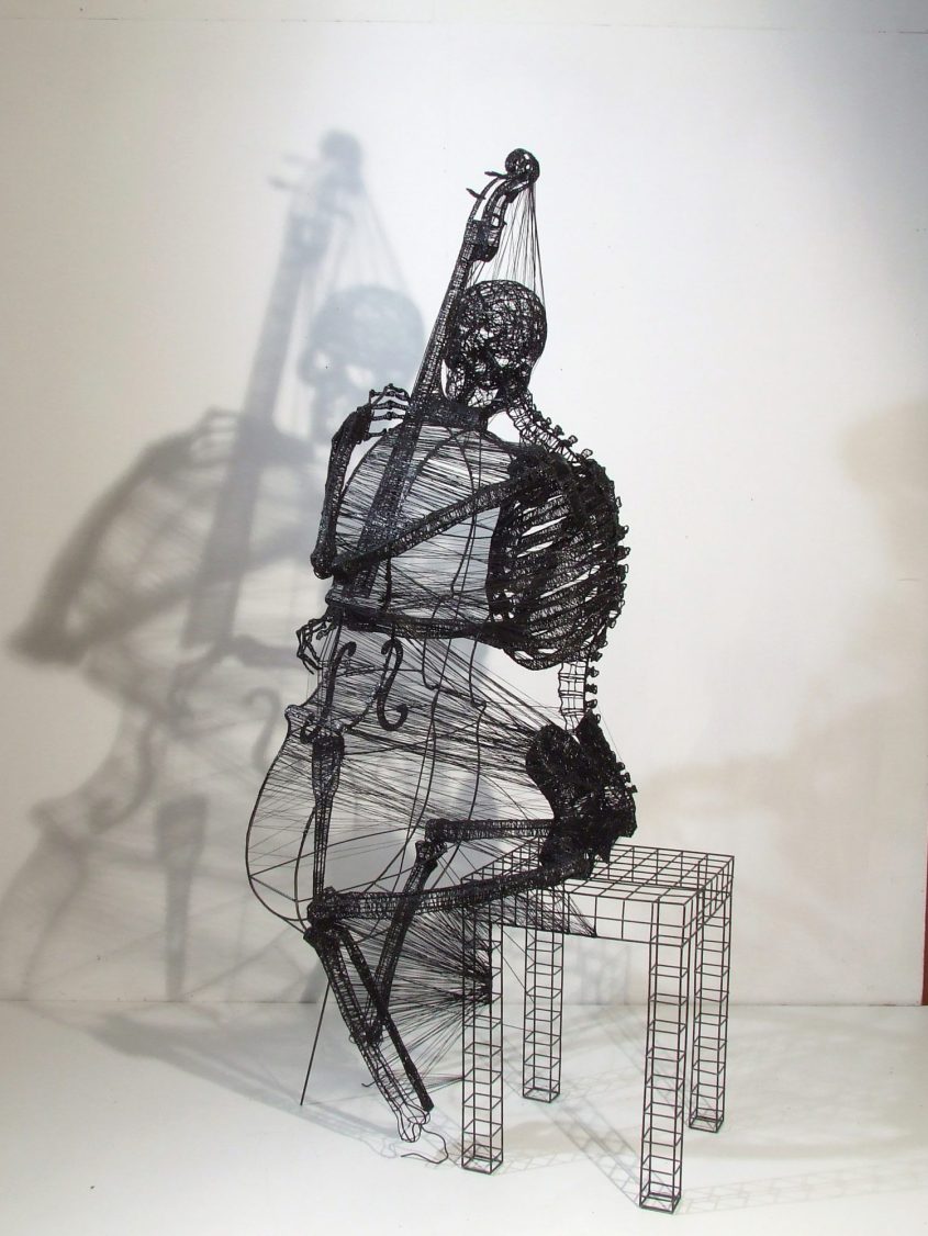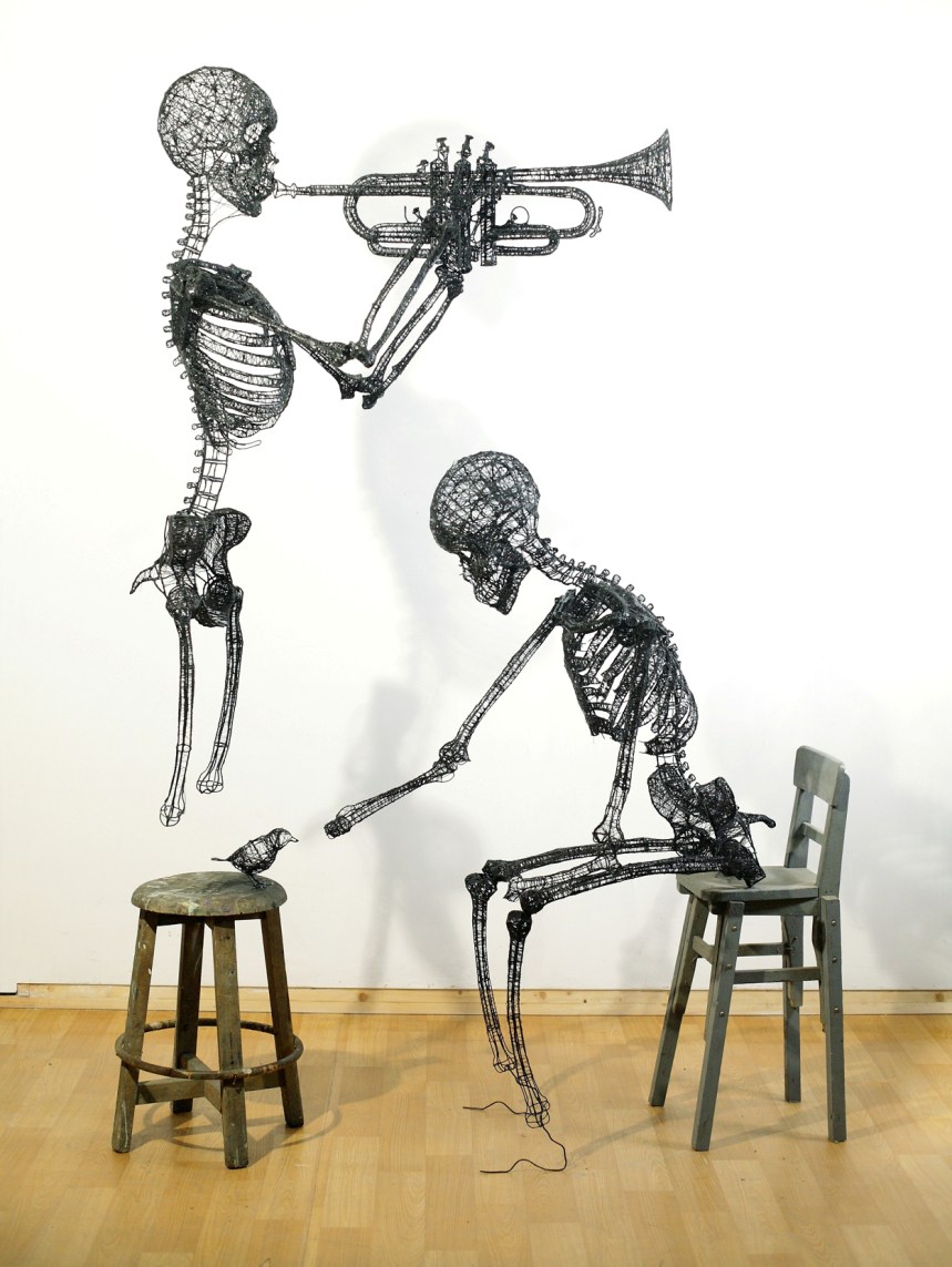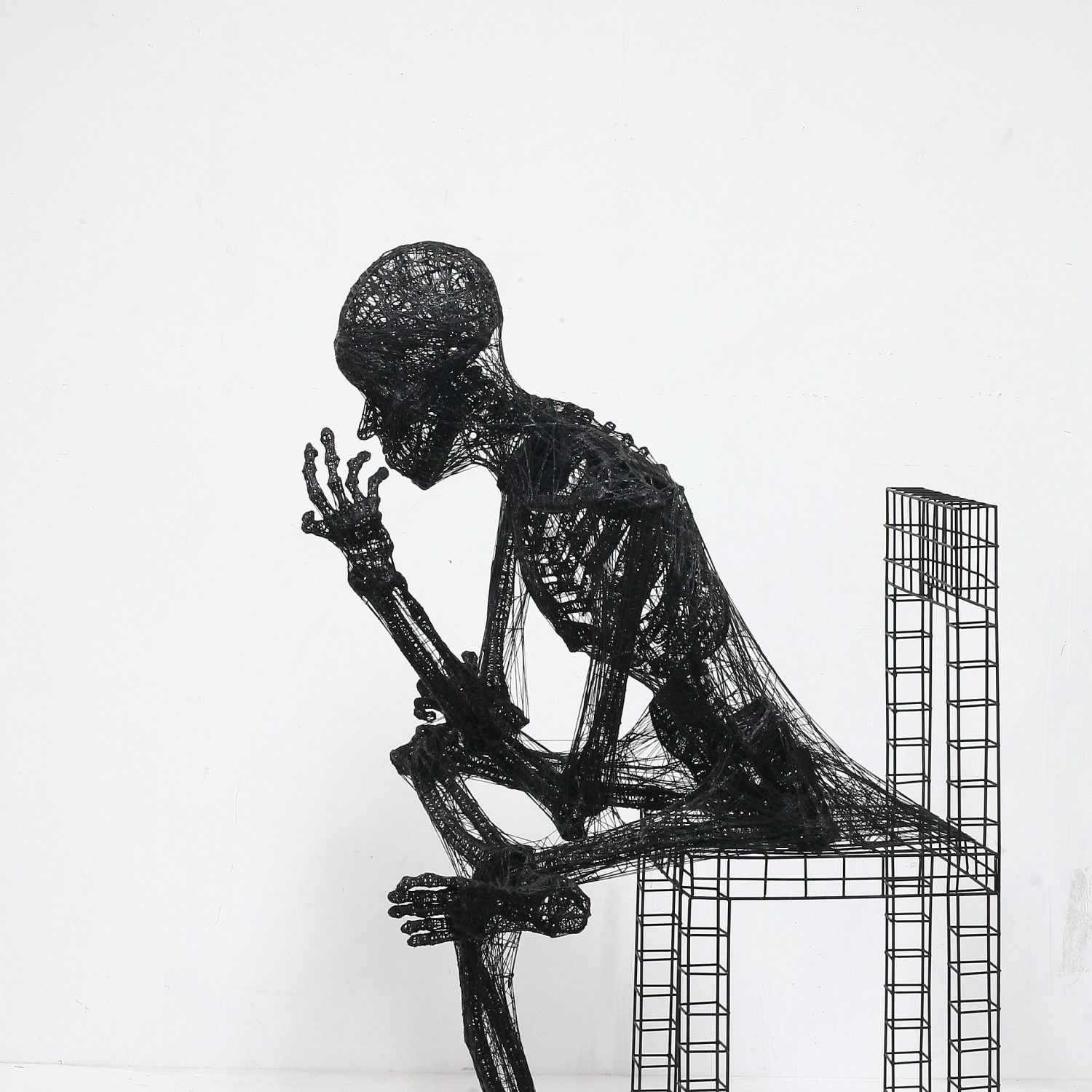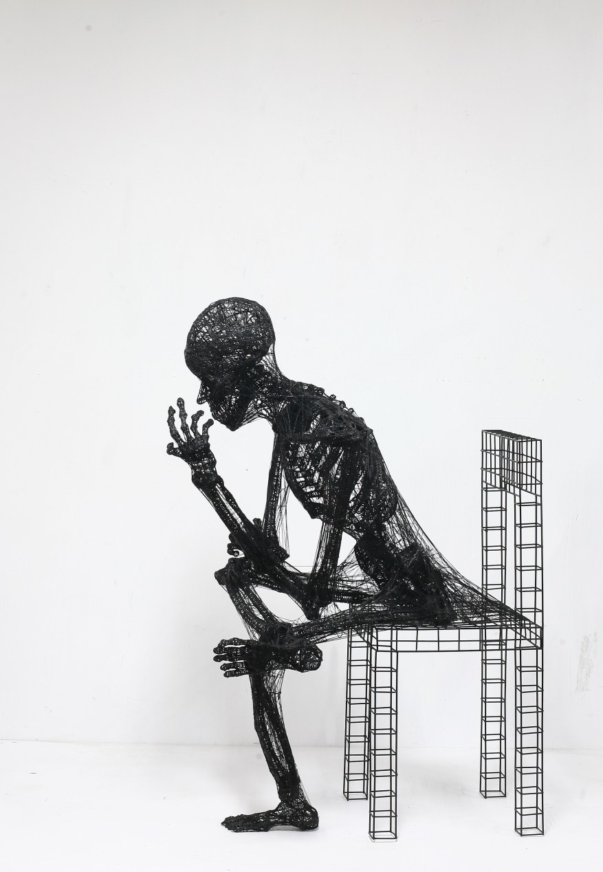 Yong Won Song (born 1974, Busan, South Korea) is a Seoul-based artist known for using wire, steel, thread and glue to create hollow but complex animal, human and (sometimes inanimate) figures. The overlapping layers made up of excessive spinning and tangling give off a ghostly effect, rendering familiar things strange. The intricate structures simultaneously convey fragility and strength.