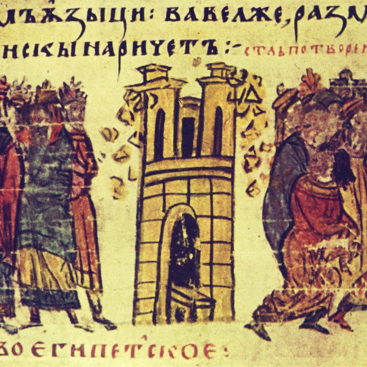 Featured: The Destruction of the Tower of Babel from the 12th-century Byzantine manuscript Constantine Manasses Chronicle, Wikimedia Commons, Public Domain