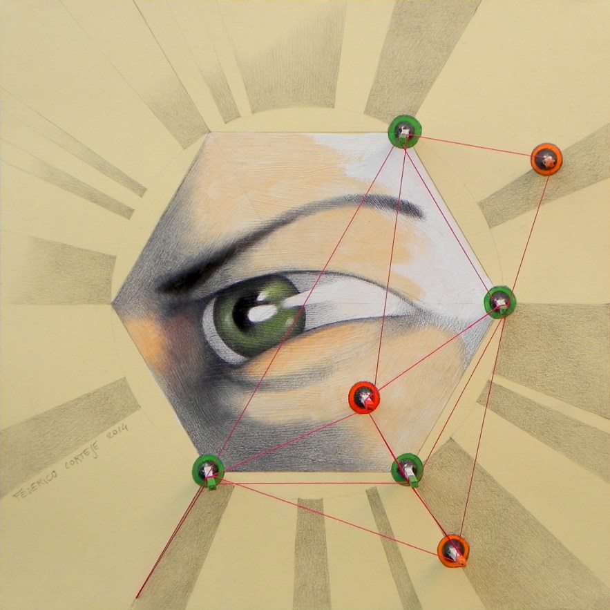 Federico’s artistry revolves around the drive to sort, to label, to arrange. This attitude, he guesses, stems from a primordial insecurity. The illusion of putting order into chaos – as in “The Stars Reflected in the Eyes” – eases his concern and anxiety.