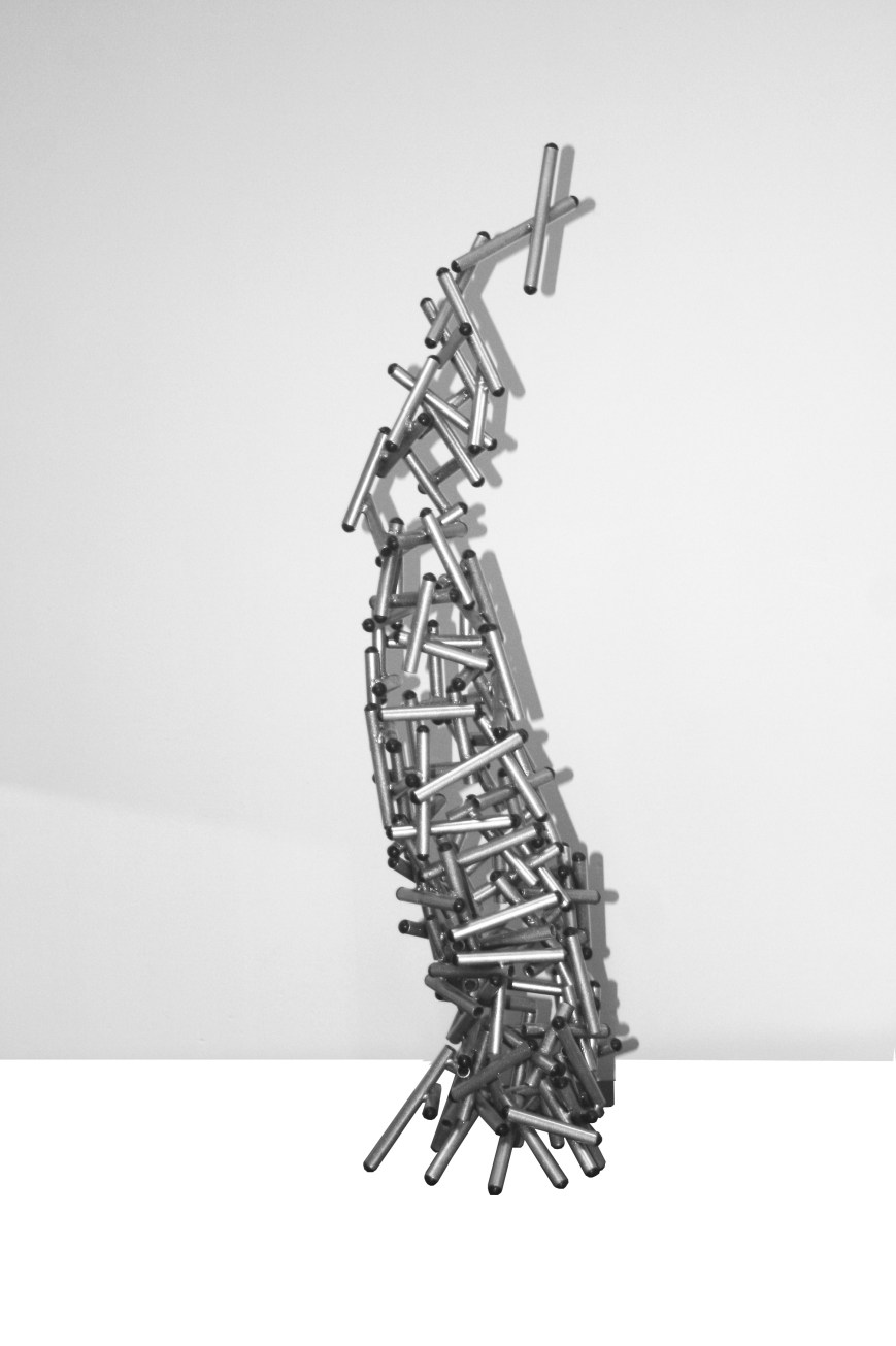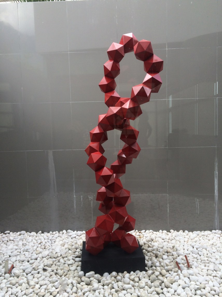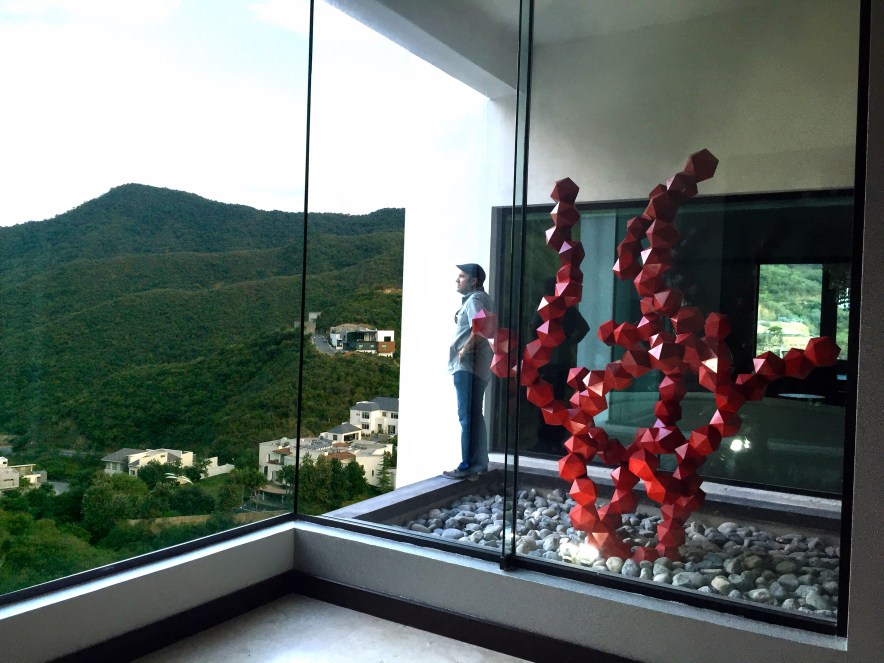 “Fractality”, “Growing Life in a Cube”, “Time Fluctuations”, “DNA Chain” – every sculpture by Marco Tulio Guajardo (based in San Pedro Garza García, Nuevo Leon, Mexico) is intriguingly titled. Marco, who also happens to be a painter and product/furniture designer, writes that his artistic research focuses on the mystery of proportions, patterns, systems, codes and symbols that emerge when matter combines with spirit to produce (and sustain) life. His bold and inventive works feature growing and shifting strands, molecules stacked upon molecules rising up from a basic and simple position, dense and complex nests, lines that intersect, depart from and compete with each other. This biological theatre is executed in different sizes, and in varying colours – red, silver, white, gold.