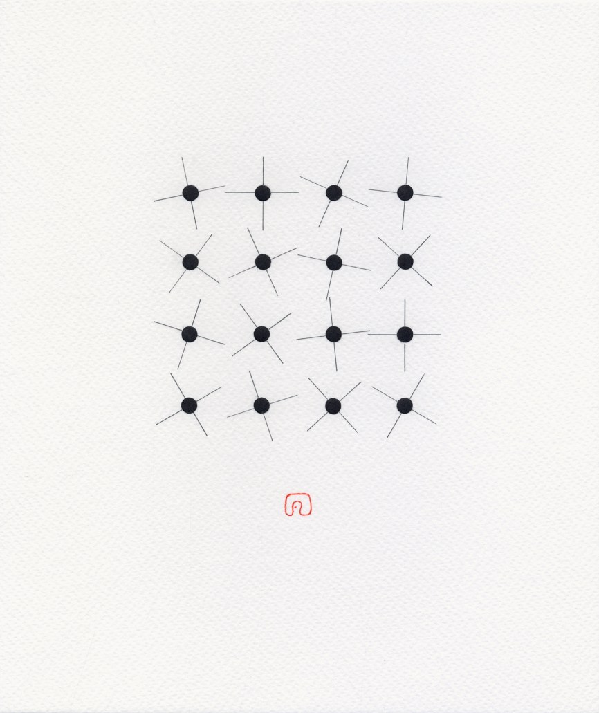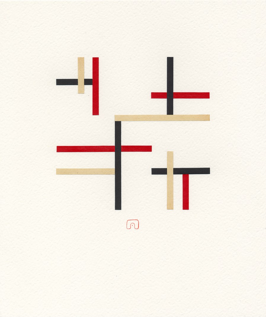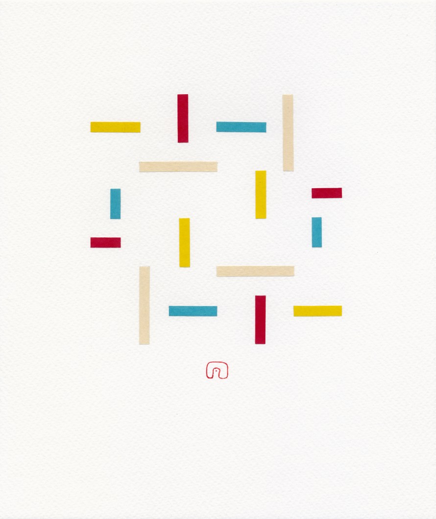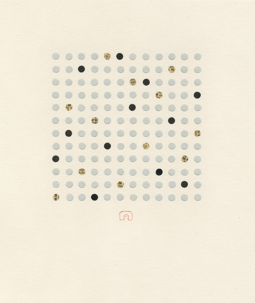 Inspired by movements like Suprematism and Bauhaus, Slovakian artist Slavomir Zombek creates collages that contract form in order to expand content. He uses simple geometric arrangements to communicate big ideas—like duality, love, silence, utopia and dystopia. “Utopia”, for example, is composed of a perfect grid with little circles at the intersections. In “Dystopia”, the pattern is disturbed, the lines are still attached to the dots but they break away from each other, turn here and there. Connections are severed, a sense of chaos easily emerges.