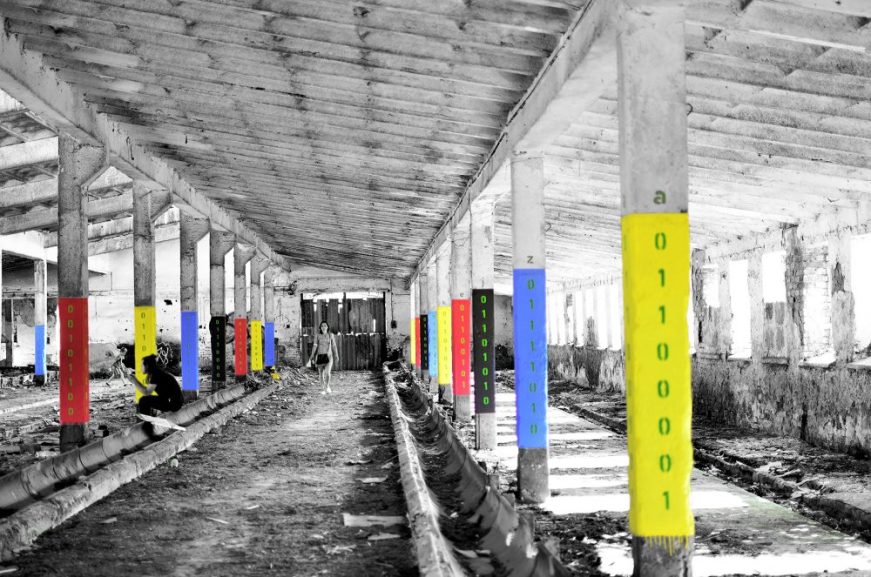Slavomir has also worked on a project called “Melancholia”, an art installation in an abandoned cow barn outside Levoca. He supplies the Image (encoded in BLUE), Peter Milcak, the Word (YELLOW) and Julius Fujak, the Sound (RED).