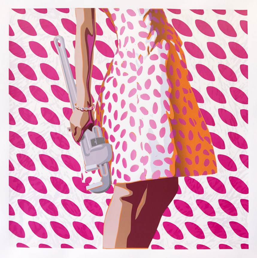 The modern-day women of Kelly Reemtsen use it all—dishrags to wrenches to chainsaws, objects that range from domestic to menacing. They undertake household chores and traditionally masculine tasks but remain adorned in fashionable designer dresses and runway-worthy accessories. They boldly exhibit strength, capabilities and versatility and they do so while wearing their femininity with pride. They feel no need to dilute or dissolve their inner identity. They keep alive whatever in them is soft and delicate, colourful and beautiful. The sharp juxtapositions in the images also represent the elusive nature of women, many of whom may comfortably contain seemingly contradictory traits—and can forever be a source of puzzlement to the men around them.