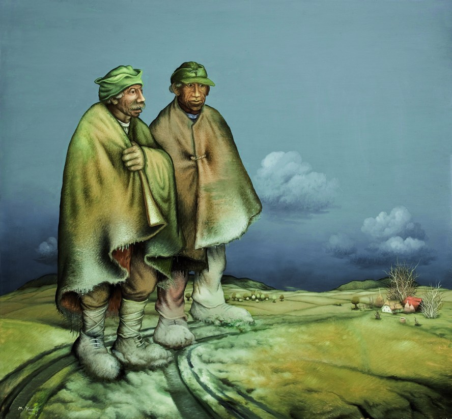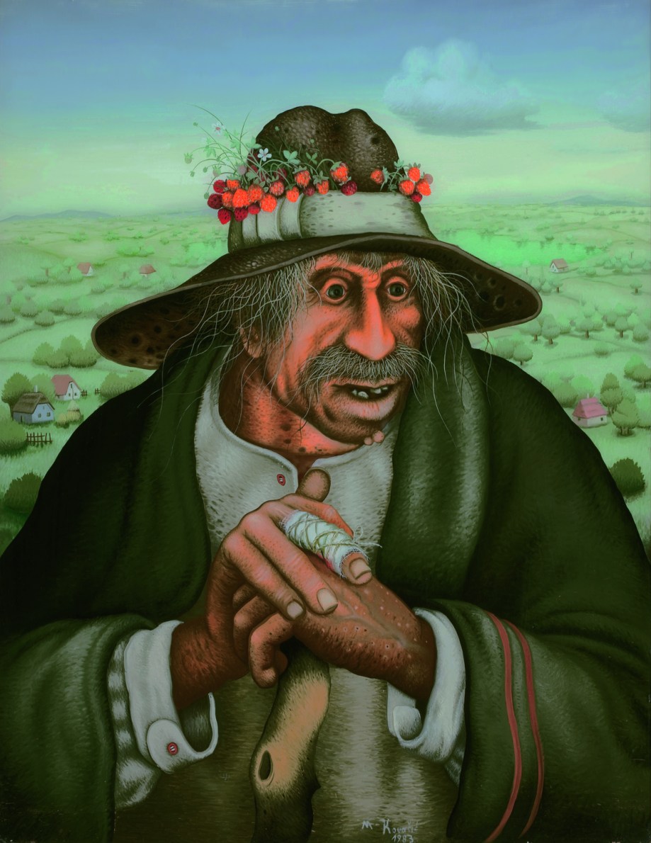 “When he paints people he regularly employs systematic deformation, on the verge of caricature, but with an irresistible expressiveness. These are only exceptionally portraits, and much more often types and representatives of the rural vortex of destinies, most often weirdos, marginal characters and wretches in rags. When he paints landscapes, he mainly fills them with lush vegetation, and represents them against the unusual background of tense morning or evening twilight, an eclipse or a stormy sky.”