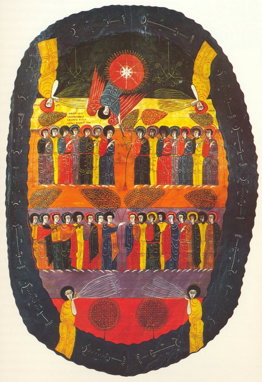 Facundus Beatus, f°145: The Elect and the Angels restraining the Winds, Wikipedia [Public Domain]
