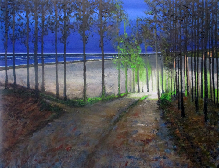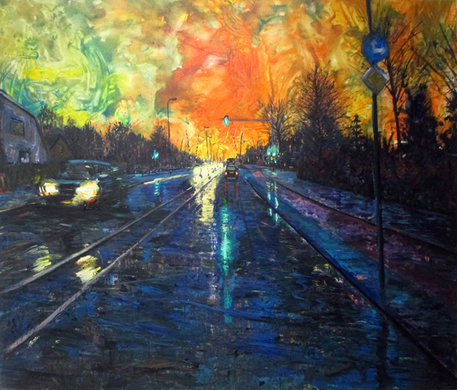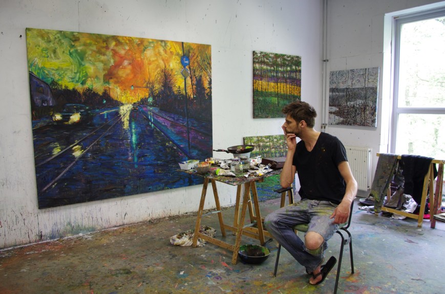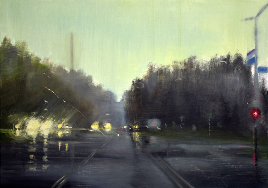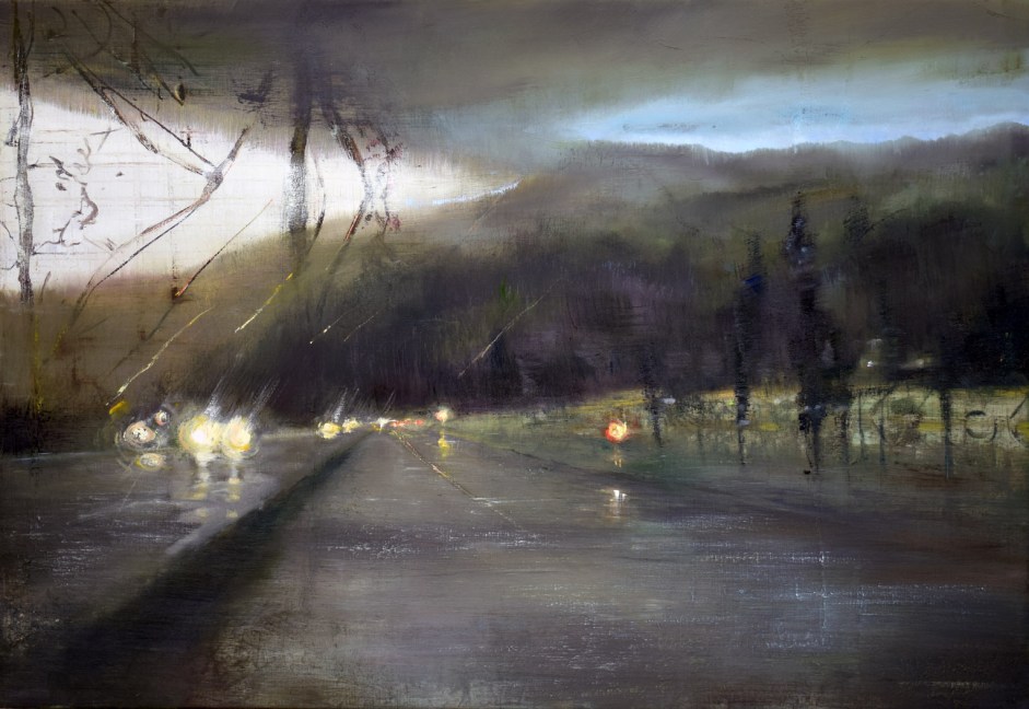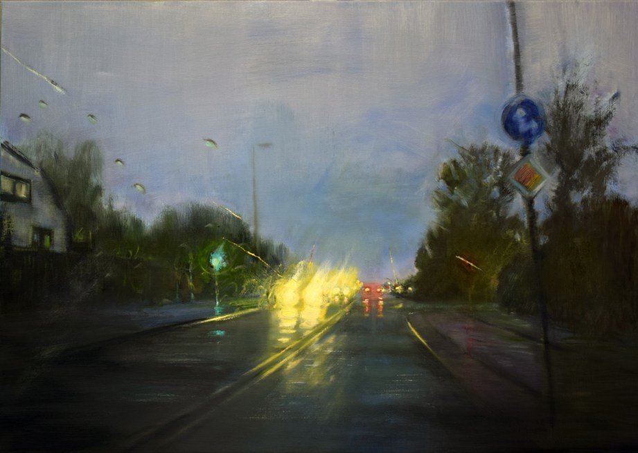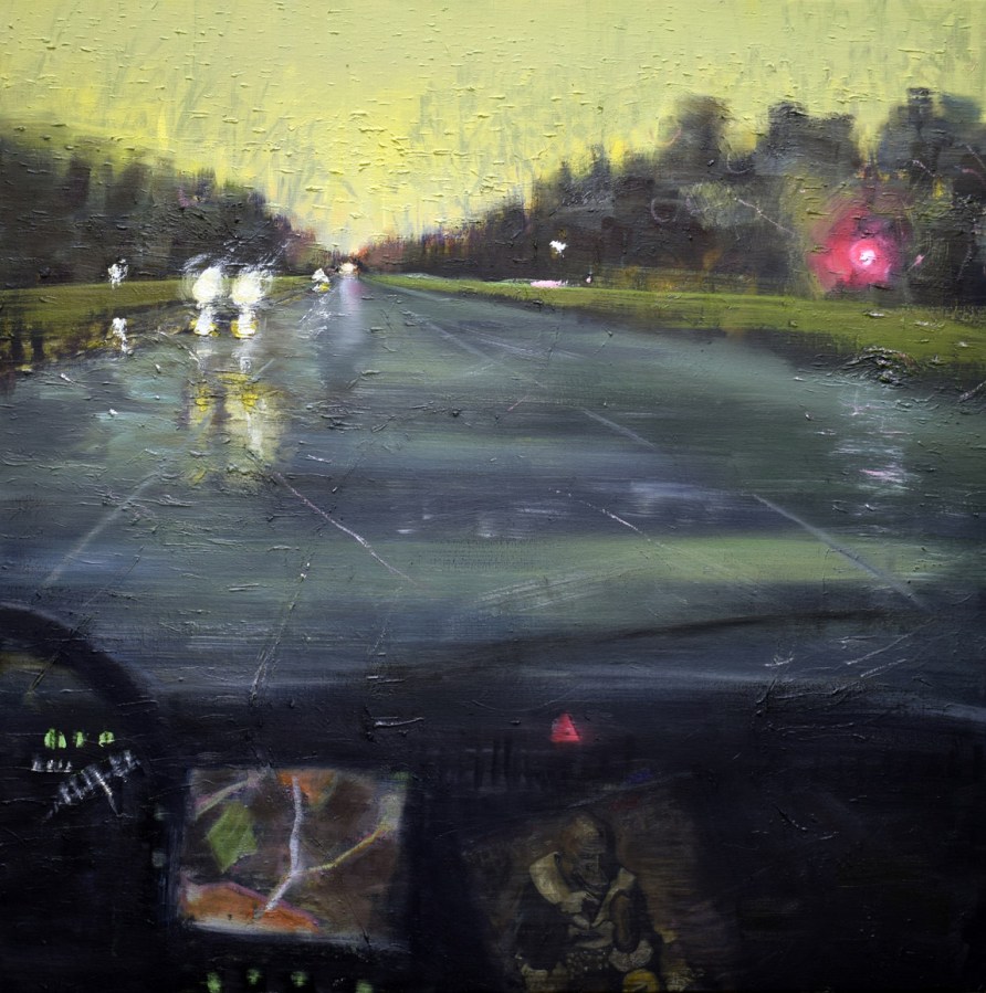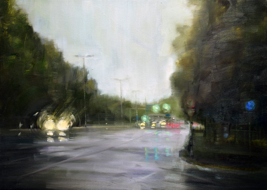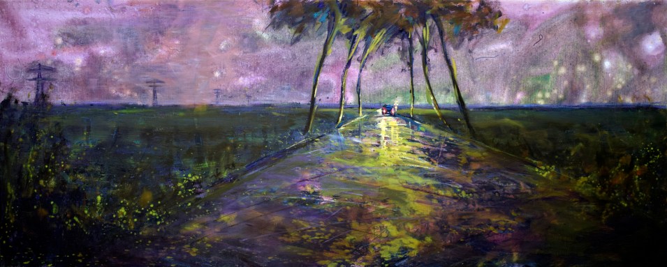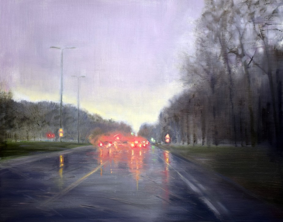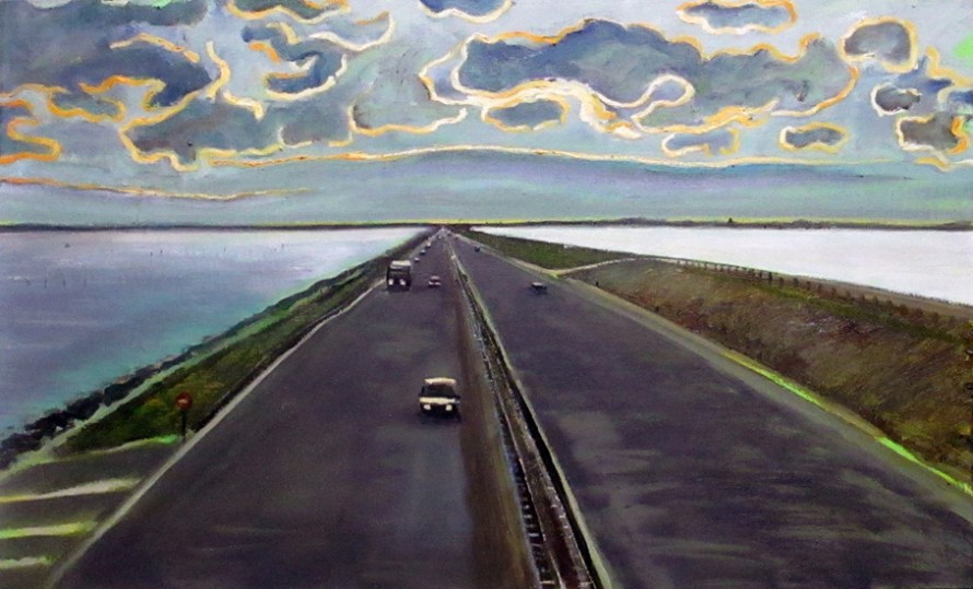 Working mostly with oil and sometimes with acrylic, Dutch artist John Konijn takes his subjects from his immediate environment—the horizon, skies, land, houses and infrastructure. What’s interesting is that his paintings never contain a central location or destination. They are all about movement and transportation, showing trucks on highways, cars at the crossroads, and forks in the forest—the point of view being mostly of the driver or the walker. Taken together, the artworks reflect the energy, the curiosity and also the restlessness, the perpetual dissatisfaction of the modern world.
