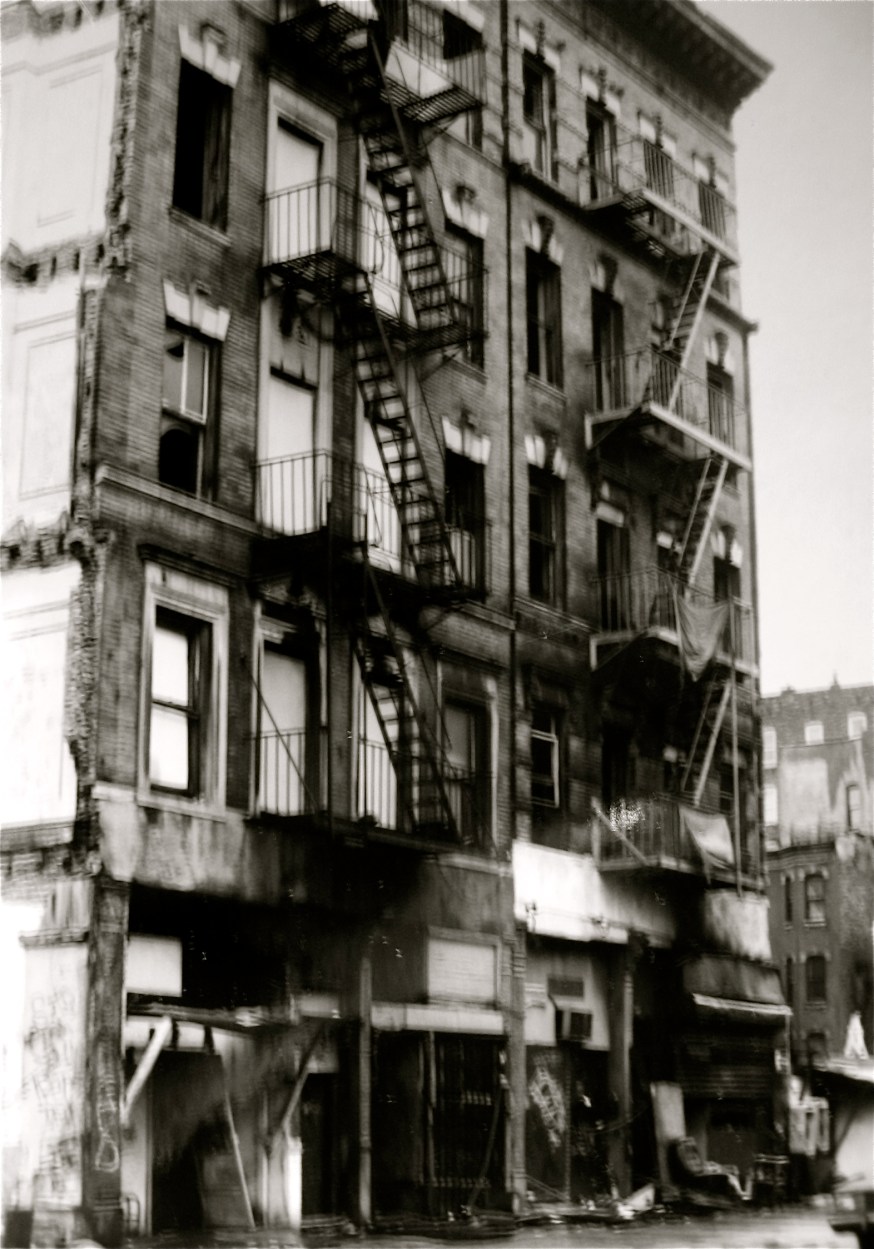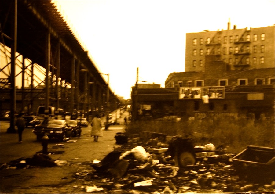 Families that had the means fled the waves of crime and drugs, and the once vibrant neighbourhoods fell silent. The South Bronx, Harlem, the Lower East Side and many parts of Brooklyn resembled battlefields after the war, except that the refugees had never been relocated. “Today, practically every big city in America is made up of or surrounded by neighbourhoods being consumed by this repeating pattern,” maintains the artist, “as the current succession of economic recessions inflicts unemployment, foreclosure, abandonment, arson and crime across the country. In the wake of this slash and burn policy, with the poor and middle class as it’s chaff, spring the ‘green’ shoots of gentrification.”
