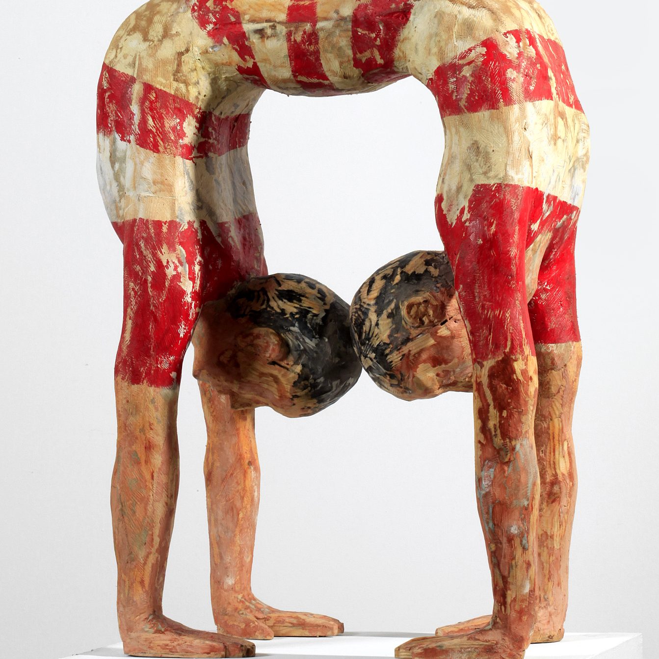 You have a few contortionists that also happen to be Siamese twins. One pair is without faces, another is missing legs. What deeper meanings do you wish to explore and convey through bent, twisted bodies and the element of duplication?