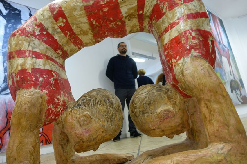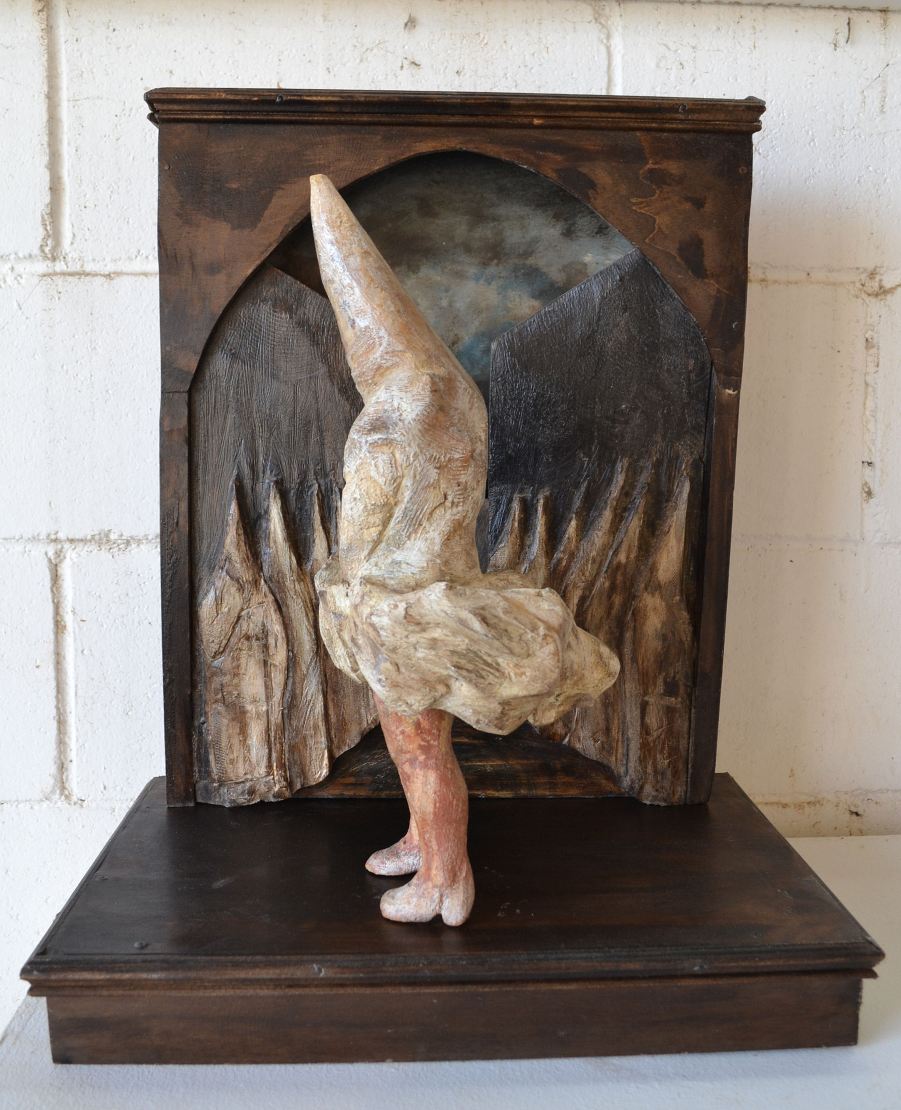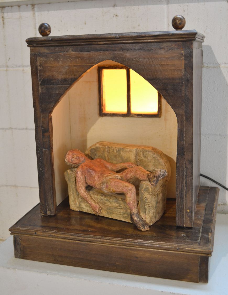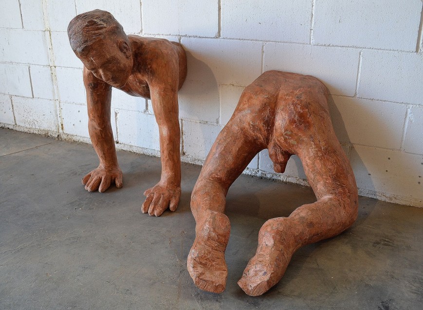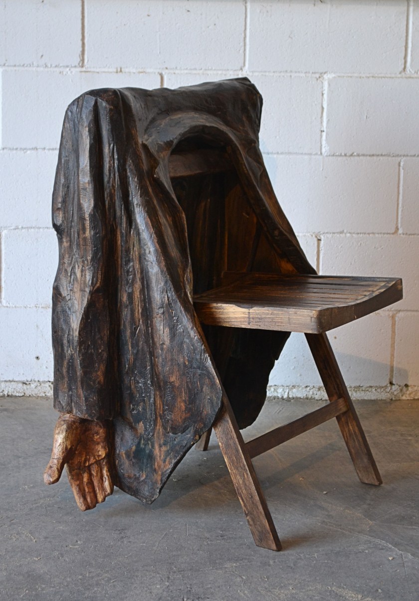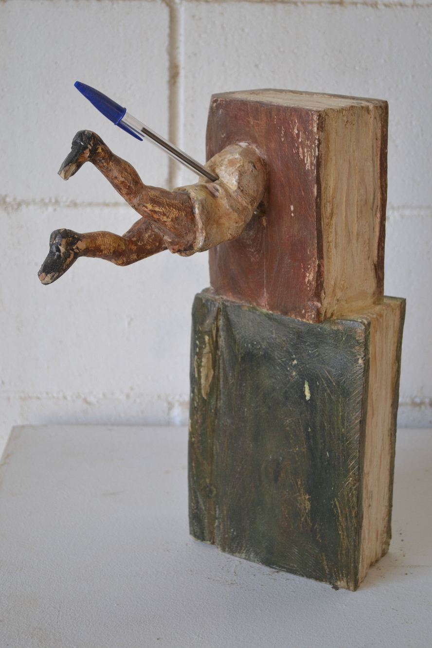 Spanish sculptor Joan Priego is known for his surreal wooden works that manipulate the human body and play with philosophical and religious themes. His recurrent subjects include the tension between modernity and postmodernity, the effect of a fluctuating economy on the individual and the multi-faceted human identity.