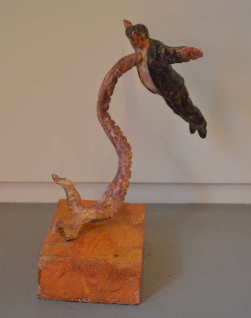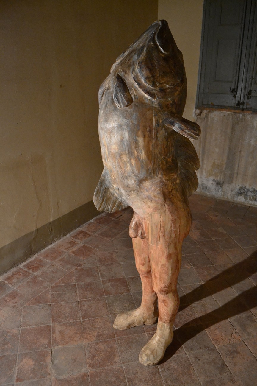 I wanted to make a hybrid—half-human half-animal—but with the useless part of each species, the brain of the fish and the human legs, just to make it look ridiculous and contradictory. However, the sculpture also has the strong sexual form of a phallic symbol.