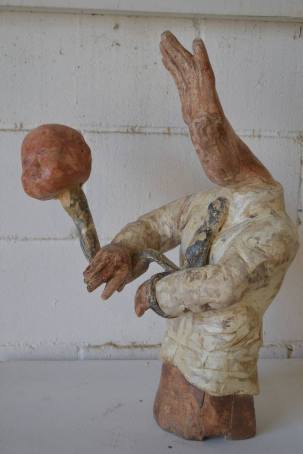 Since Nietzsche and Freud, “the Subject” is no longer a stable entity as it was for Kant or Hegel, but a multiplicity of masks. Our Postmodern subjectivity has become fragmented. This contemporary reflection about identity becomes the main topic in my work. My sculptures are carved out from pieces of wood; they pretend to be some kind of metaphor about today’s individual identities, fragmented and multiple. Like the contemporary concept of the Subject, they have been made up from the ruins of the project of Modernity. I also use recycled wood coming out from demolished old buildings for my works. What was the proud joist of a building becomes, in my art, just a part that helps in the construction of a splintered identity.