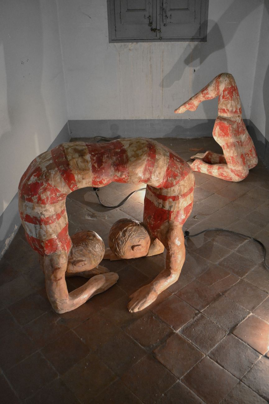 The contortionists and the Siamese twins are a critique on the contemporary labour market and mode of production. The philosopher and semiologist Paolo Virno says that the characteristics of the virtuoso performer—pianist, dancer, actor—such as improvisation and communication are nowadays the foundation of the intellectual mass work. A new kind of employment that is structured like a public sphere where all of us, as workers, are continuously exposed to the presence and the look of the Other. The mode of production of Post-Fordist capitalism has become a sort of virtuosic performance that no longer produces valuables as a result.
