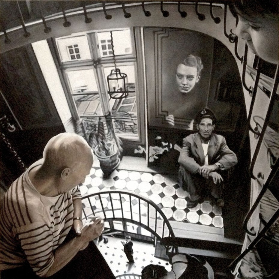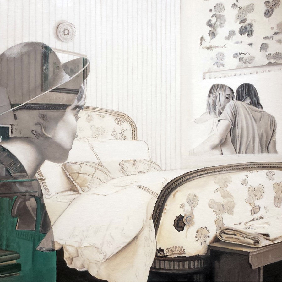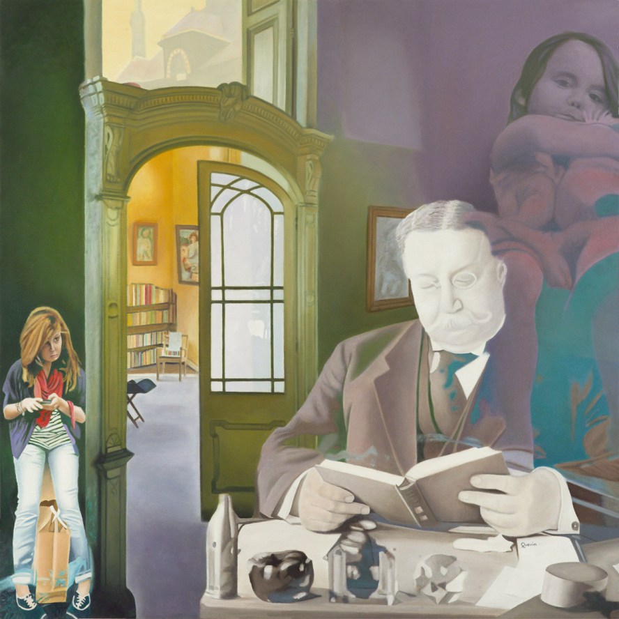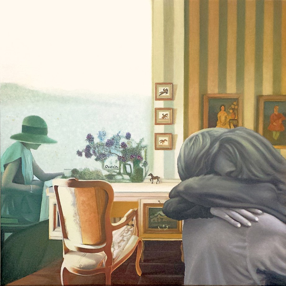 Hailing from an artistic family, Rome-based painter and illustrator Davide Querin (born 1962) creates highly detailed, psychologically meaningful scenes in fairly limited square canvases. Though dense, the compositions never seem cluttered or chaotic. Employing gestalt principles, the artist manages to superbly pack up and fold multiple locations and moments in a single frame.