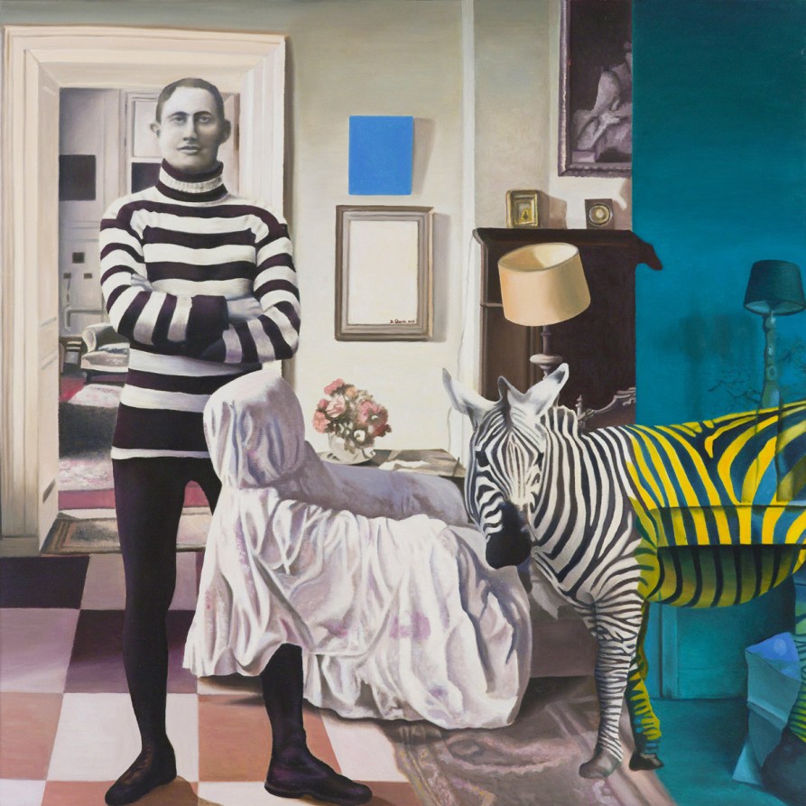 I have painted about 150 oil paintings and I never did a statistic on the use of interiors versus exteriors. Very often I mix an interior with an exterior, or I set a scene in an interior, but always with doors and windows, most of the time open. The interior of the house symbolises the ego in one’s own body, the exterior the communication with others and the ego’s relationship with the world. An elegant interior, well furnished and well lit, with windows and open doors, represents a harmonious, joyful and communicative self.