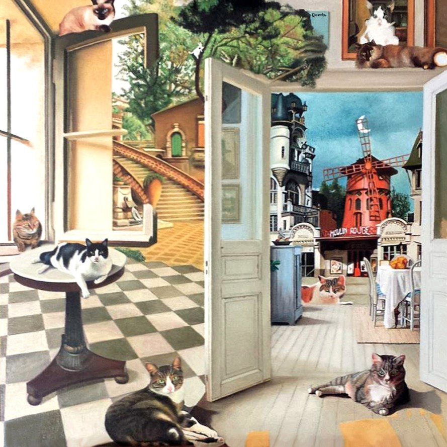 I have seen the chessboard print and cats in a number of your paintings. Do they stand for anything? Have any special meaning?