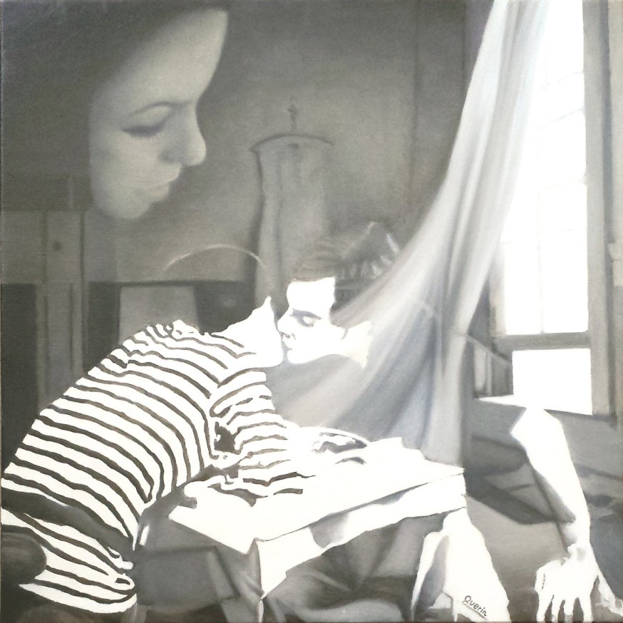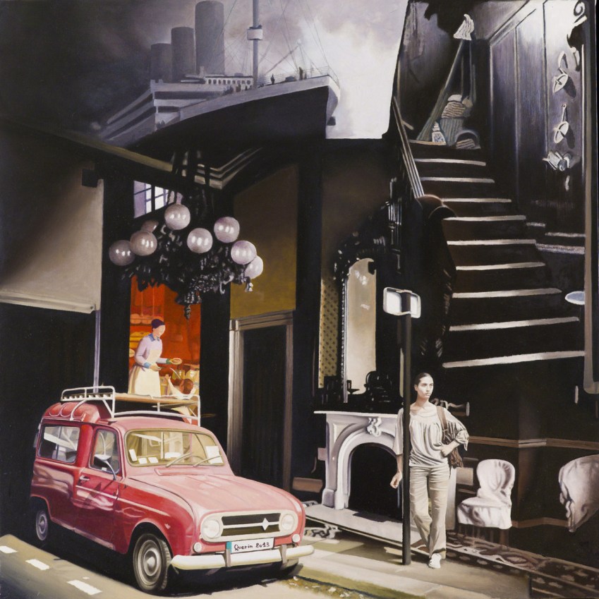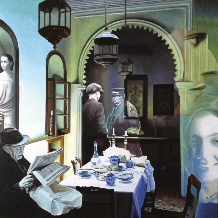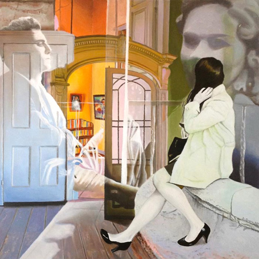 I take these images that I see lucidly, I interpret them, rationalise them and put them on canvas. The transparent figures in my paintings are not ghosts, but my way of representing the temporal overlaps as they appear to me.