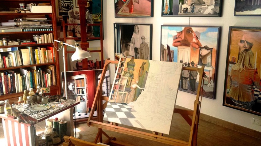 My paintings, which at first glance appear like a dreamlike fusion between the real and fantastic, actually are the result of a more complex relationship between the conscious and the unconscious, which I have refined over time. We know that while we sleep the unconscious plays a fundamental role by elaborating a complex network of information that, properly codified, returns to our attention as a response to our profound questions. Clearly, “unconscious” is a general term that I use for synthesis, since every individual is the sum of many deep aspects that in different cultures assume different names and meanings.