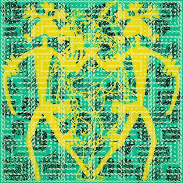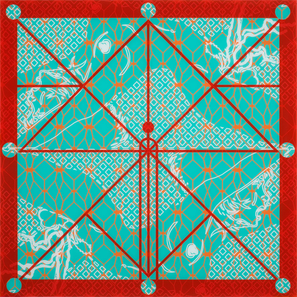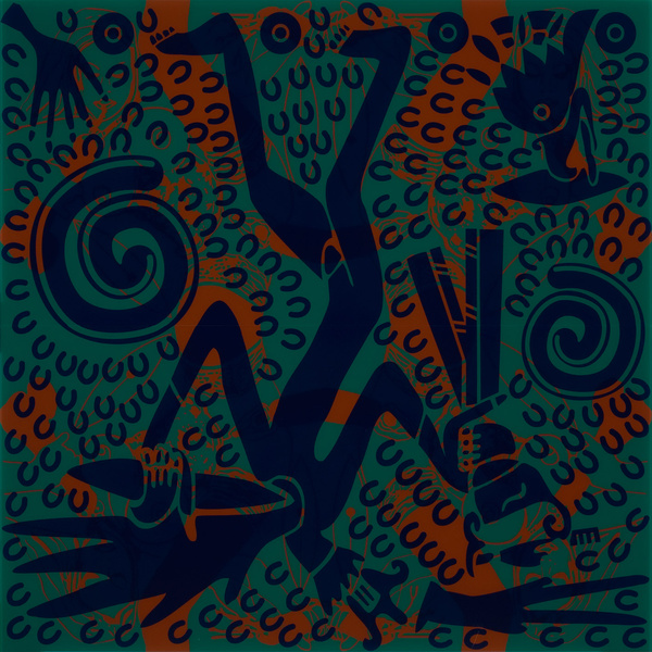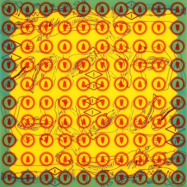 Yes, you are absolutely right! I use patterns as a way of showing a trance-like state and experience. Painting to me is a ritualistic practice. I work with highly symbolic images from pre-industrial cultures that used those designs in order to connect with their gods or spirits; or just for meditation like Indian yantra (with the Bindu point, sort of Big Bang starting point) or Tibetan Mandala to connect with the inner-self and the cosmos. Also to honour some kind of genetical-ancestral connection or create social differentiation (tattoos). Ultimately, to get some primary connection to the essence of life itself. As life keeps repeating through nature, vegetation, animals and mankind. I like my work process to be serial and repetitive with variations of small colours, similar to the Australian Aboriginal Didgeridoo sounds or the Melanesian Polyphonic voice songs.